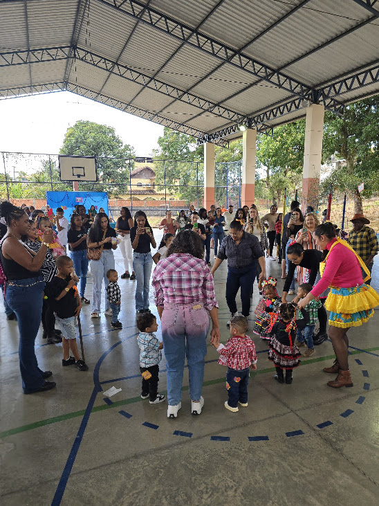 A tarde de sábado foi tomada por sorrisos, cores, música e muito carinho na Festa Julina da Creche Municipal Zilda Ribeiro Bianchini, realizada na Quadra Esportiva do Colégio Estadual Rodolfo Albino, ao lado da instituição. O espaço se transformou em um verdadeiro arraial, com decoração típica, comidas tradicionais e um clima de confraternização que envolveu toda a comunidade escolar. Famílias inteiras participaram da celebração, que é aguardada com grande expectativa pelas crianças e se consolida como um dos momentos mais afetivos do calendário pedagógico da creche.