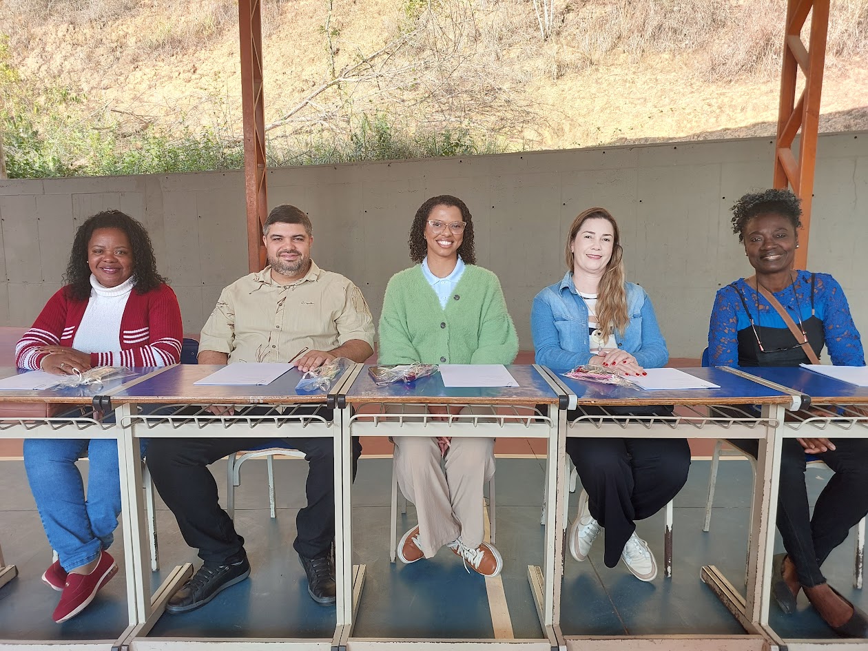 Juntamente com a secretária de Educação, o júri composto para analisar as poesias da Escola Sylvia Bath Rosas acompanhou os trabalhos com atenção total