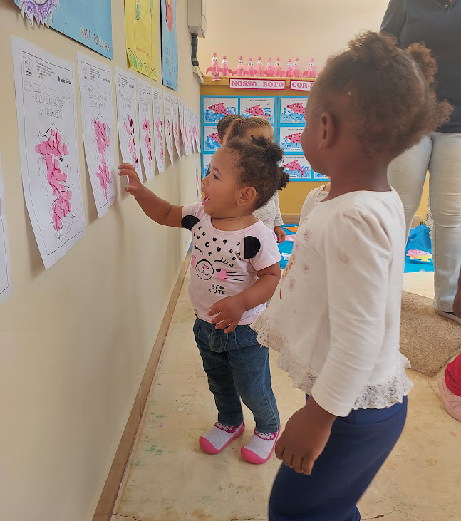 Os pequeninos alunos se empenharam na criação de trabalhinhos que ficaram expostos chamando a atenção e gerando a curiosidade de coleguinhas