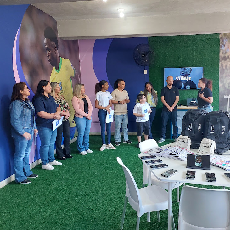 A apresentação do material foi feita pelo integrante da equipe do Instituto Vinny Jr., liderada pelo craque do Real Madrid e Seleção Brasileira