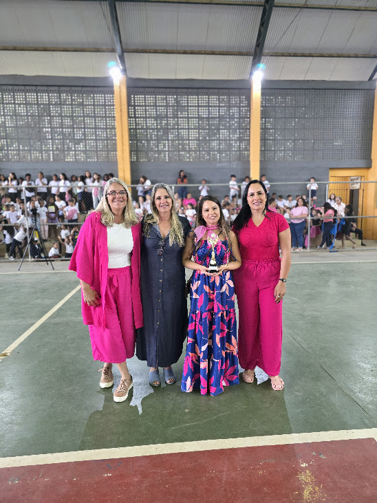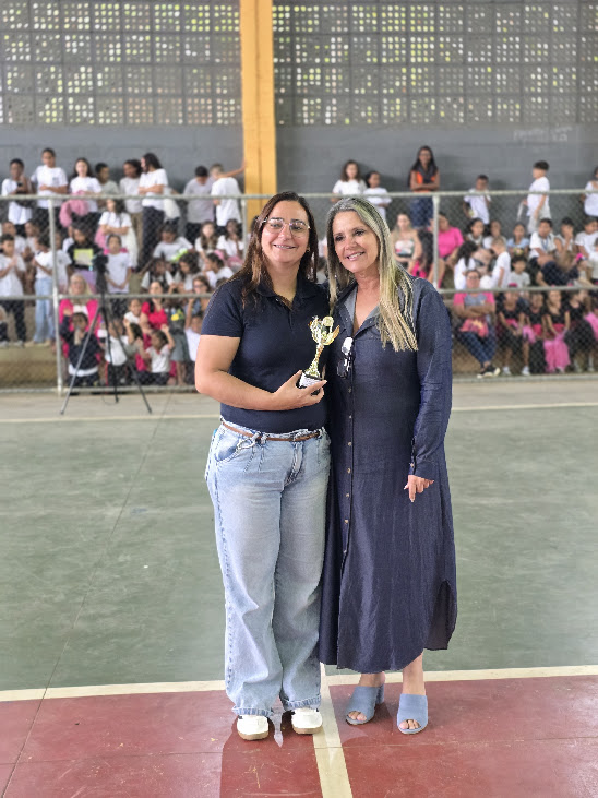 Coordenadora do CAEEM também participou intensamente e recebeu o troféu das mãos da professora Claudia Vogas, secretária de Educação