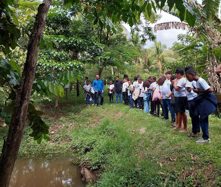 A verdadeira ‘aula passeio’ terminou com uma caminhada verde pela trilha na Mata Atlântica observando o bioma da localidade