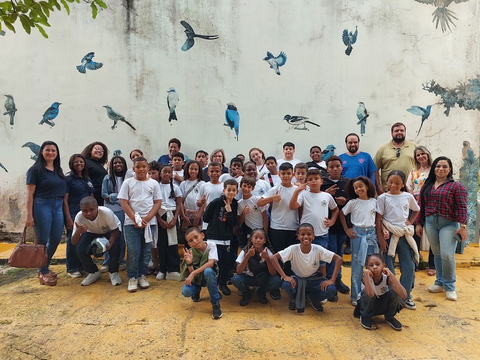 Comitiva de Macuco exibindo a felicidade de poder visitar um espaço rico em aprendizados e voltado à preservação ambiental