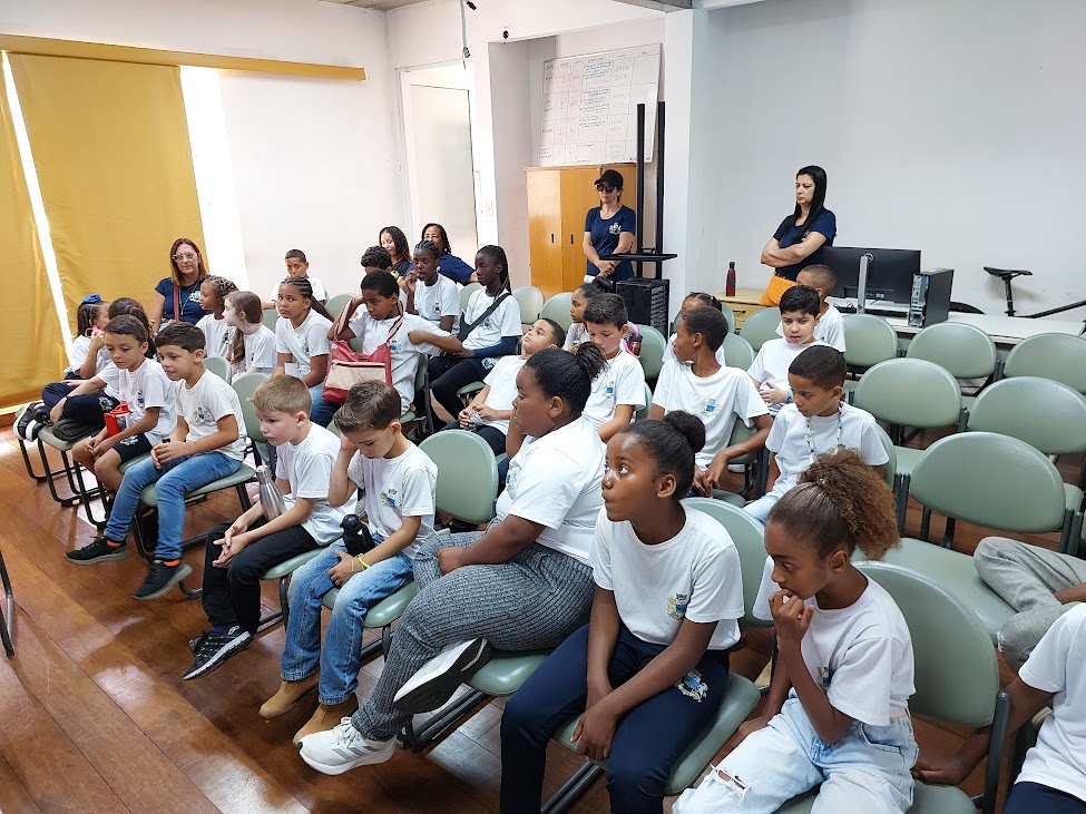 No auditório do parque, as crianças aguardam para conhecer mais novidades sobre a relação entre o ser humano e o meio ambiente