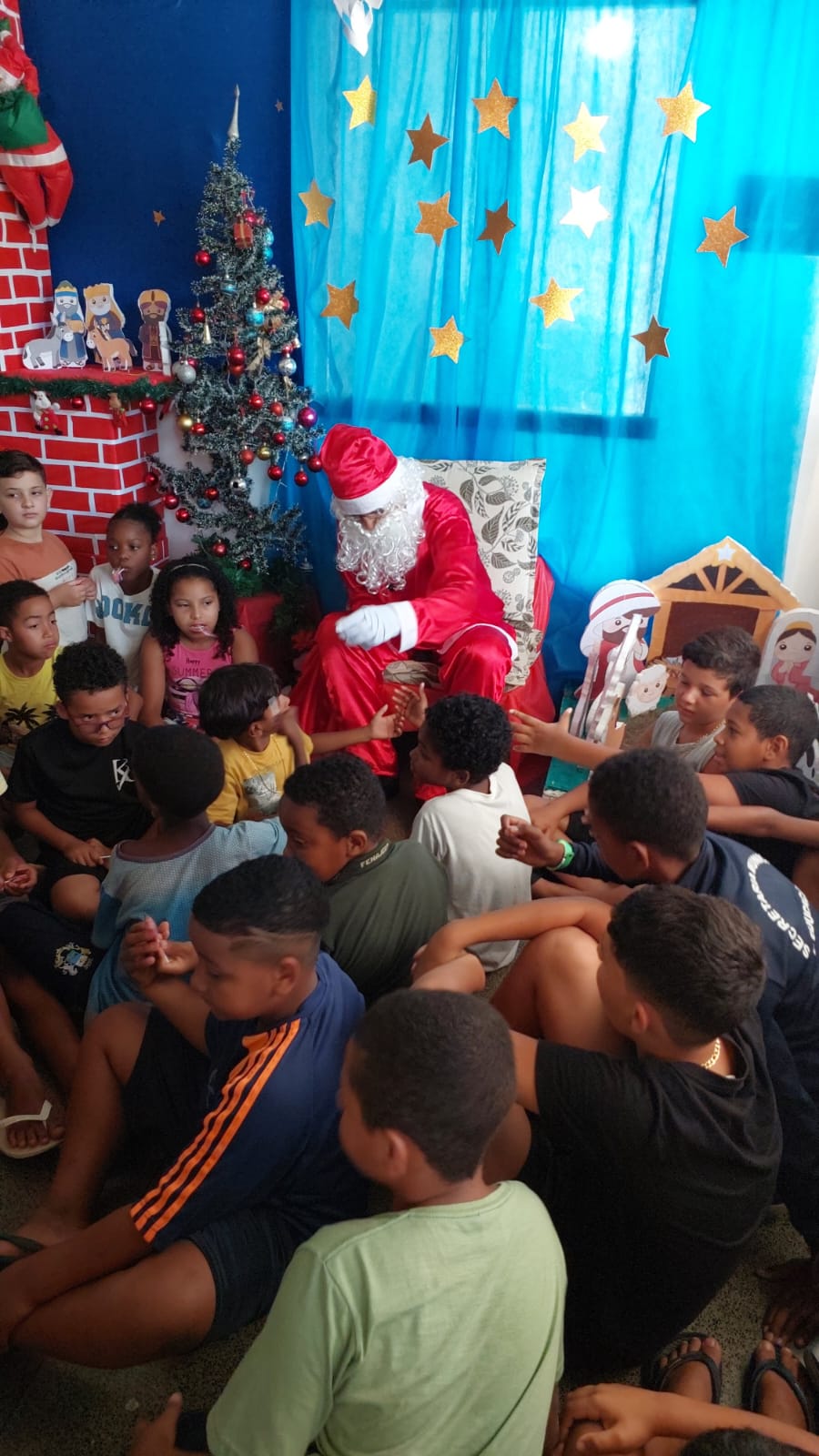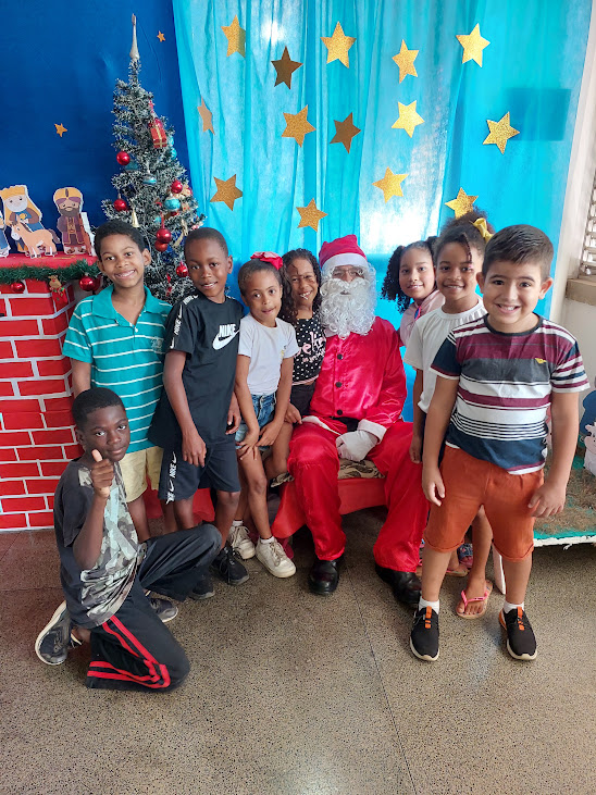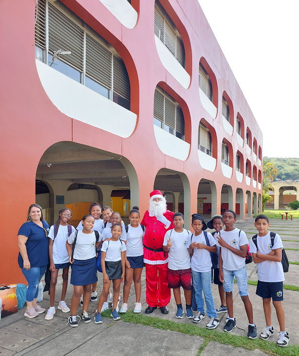O ciclo de comemorações natalinas continuou no CIEP Municipalizado Honório Peçanha, no bairro da Reta, onde novamente o Bom Velhinho foi recebido com festa pelos alunos. Entre sorrisos, conversas carinhosas e pedidos cheios de esperança, Papai Noel distribuiu palavras de paz e bênçãos, reforçando a importância de valores como solidariedade, respeito e harmonia, tão presentes nesta época do ano e tão necessários para a formação integral das crianças.
