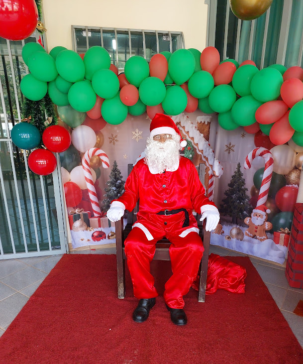 Paciente e muito carinhoso, o Bom Velhinho ouviu a todos com atenção e ainda repassou mensagens de paz, amor e união aos alunos