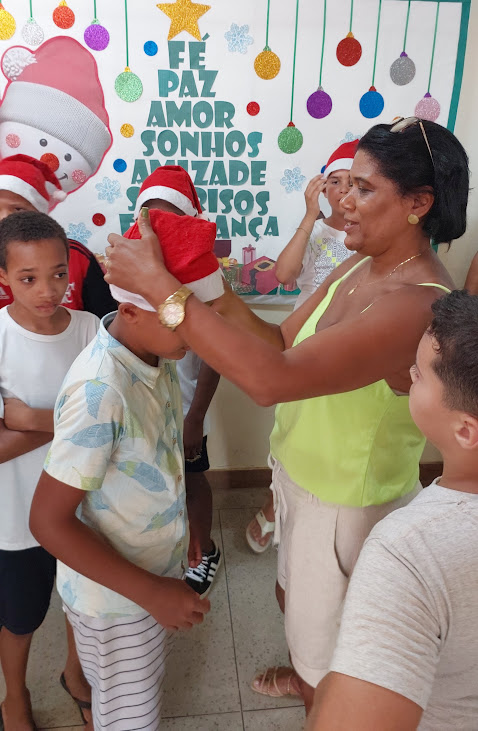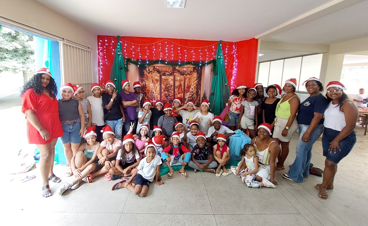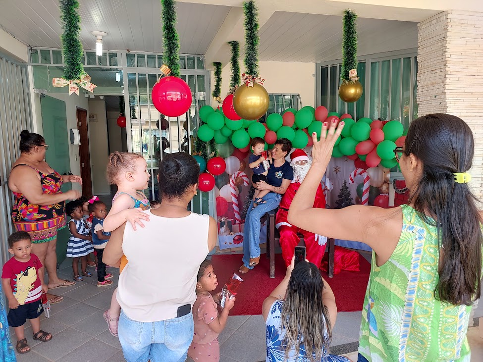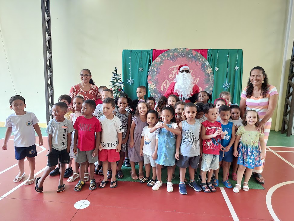Na Escola Sylvia Bittencourt Bath Rosas, na Volta do Umbigo, a celebração ganhou um clima aconchegante e familiar. Um cenário temático preparado com carinho recebeu o Papai Noel e serviu de palco para fotos em família que reforçaram o espírito de união e confraternização. A presença expressiva de pais e responsáveis transformou a festa em um encontro marcante, daqueles que ficam guardados na memória coletiva da comunidade escolar.