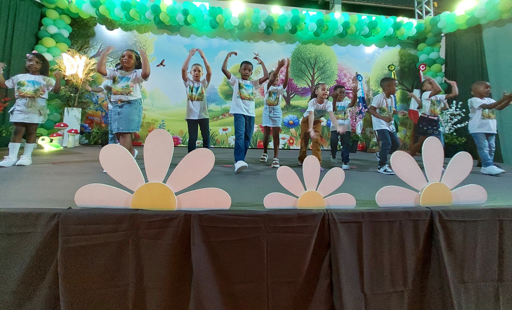 Mais uma das turminhas caprichando na coreografia para encantar papais e mamães, que na plateia aplaudiam efusivamente