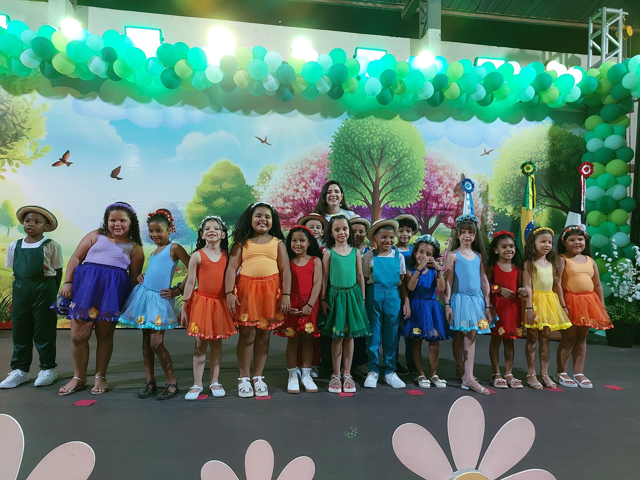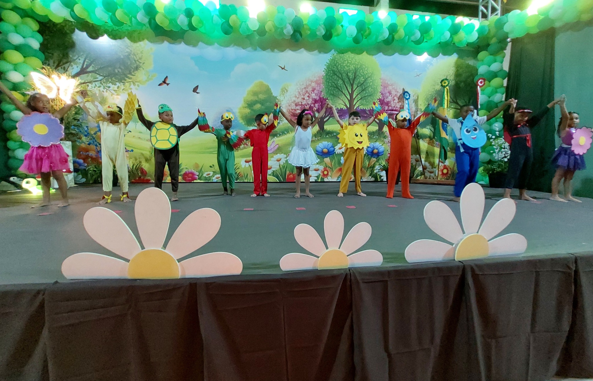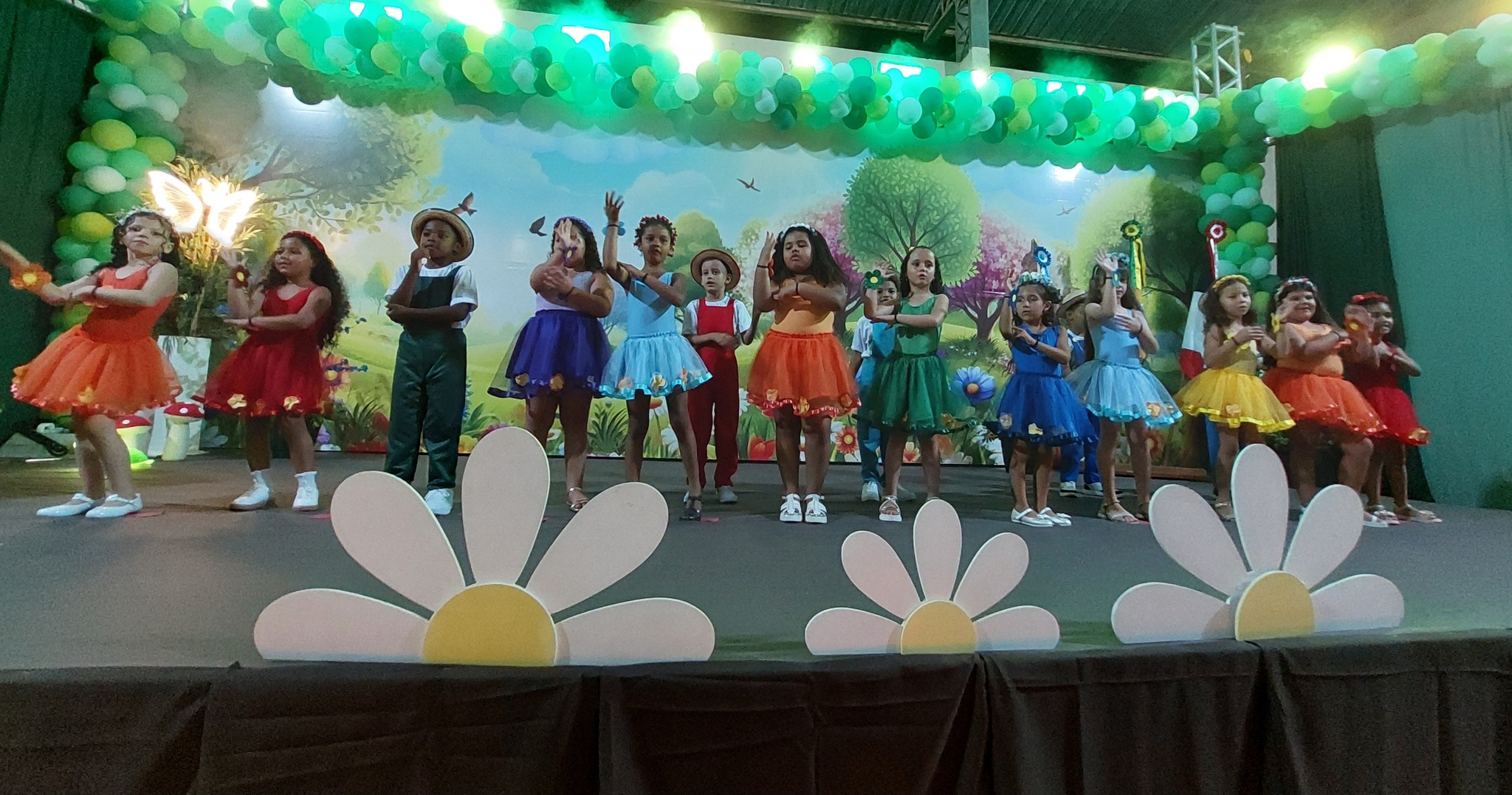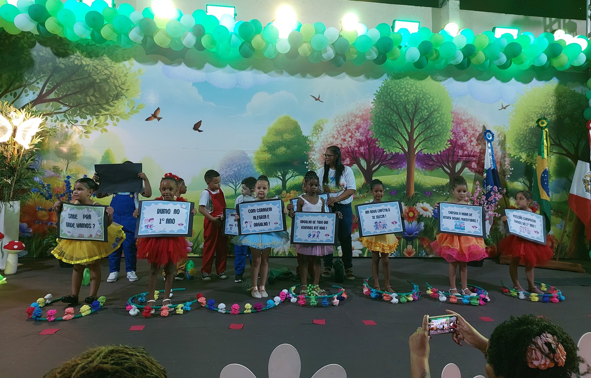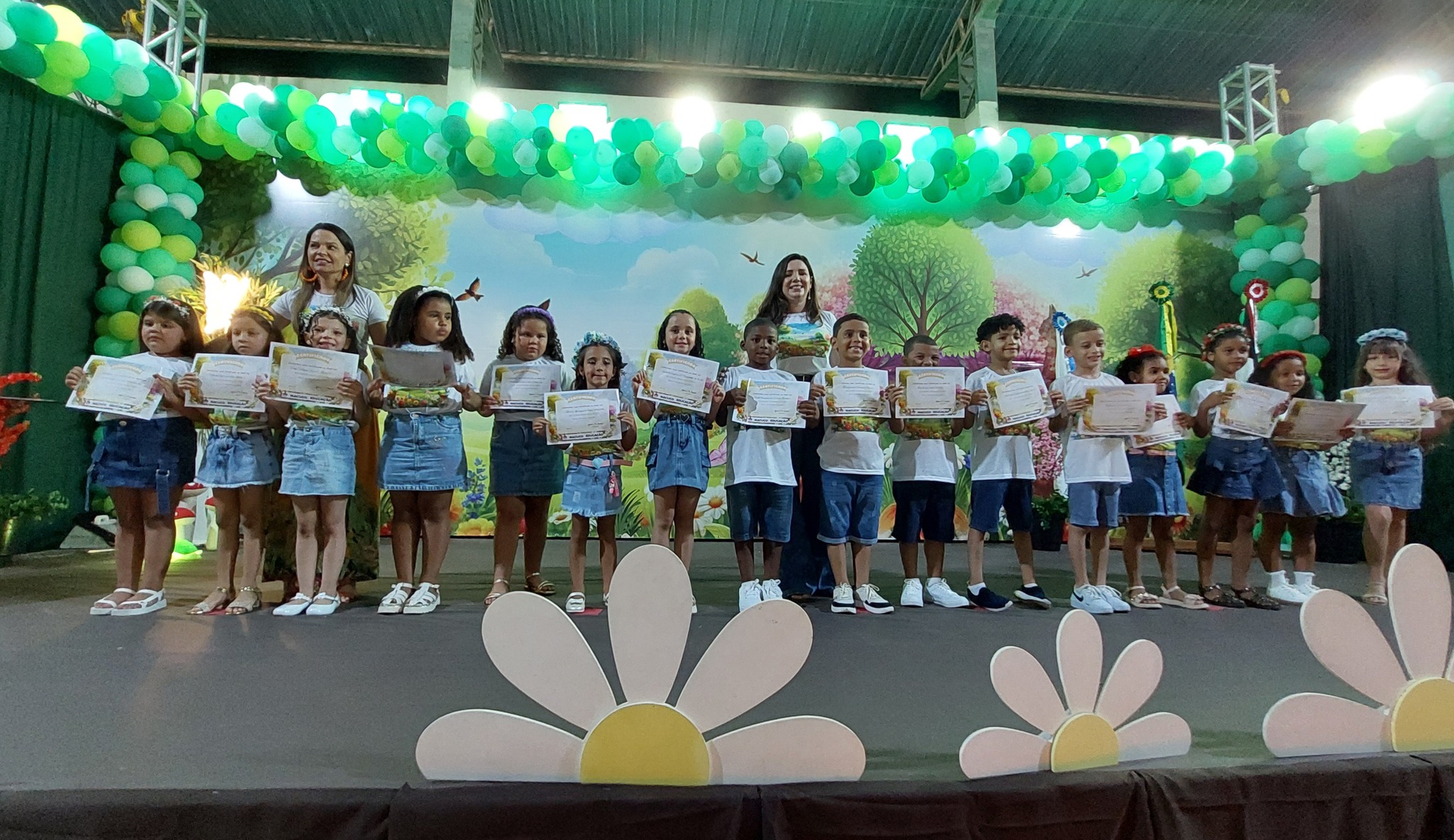 A entrega dos certificados reforçou a metáfora do ‘Jardim Encantado’, lembrando que cada criança floresceu com amor, cuidado e descobertas ao longo do ano, simbolizando o fim de uma etapa mágica e o início de novas aventuras. O Juramento Oficial, com todos de pé e o braço direito estendido, trouxe solenidade ao momento, seguido por um belo espetáculo do Grupo Agitação, mais uma vez brilhando intensamente e expondo o quão criativas são as programações da Secretaria de Educação.