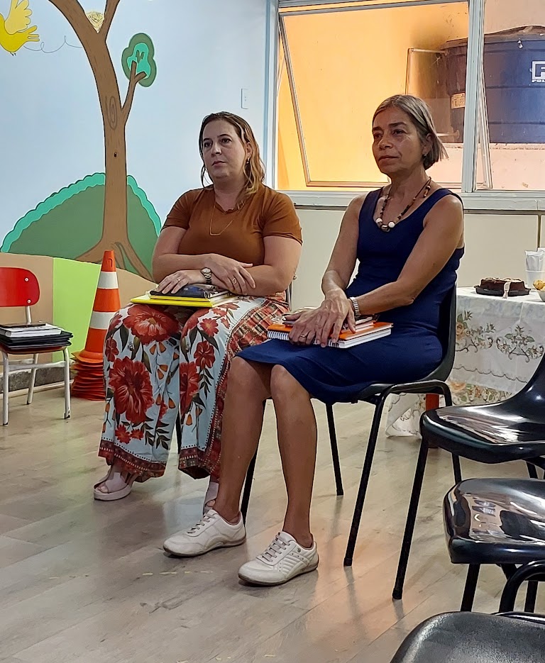 Fonoaudióloga Dayse Borges e psicóloga Paula Reis acompanhando o encontro realizado na sede no Centro de Atendimento Educacional Especializado de Macuco