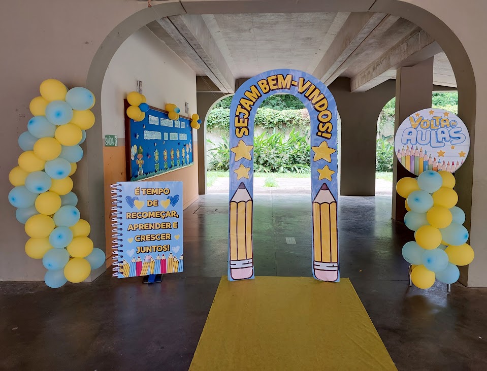 A decoração foi especialmente preparada para saudar os professores e deixá-los bem à vontade no primeiro dia de fato de atuação em 2026