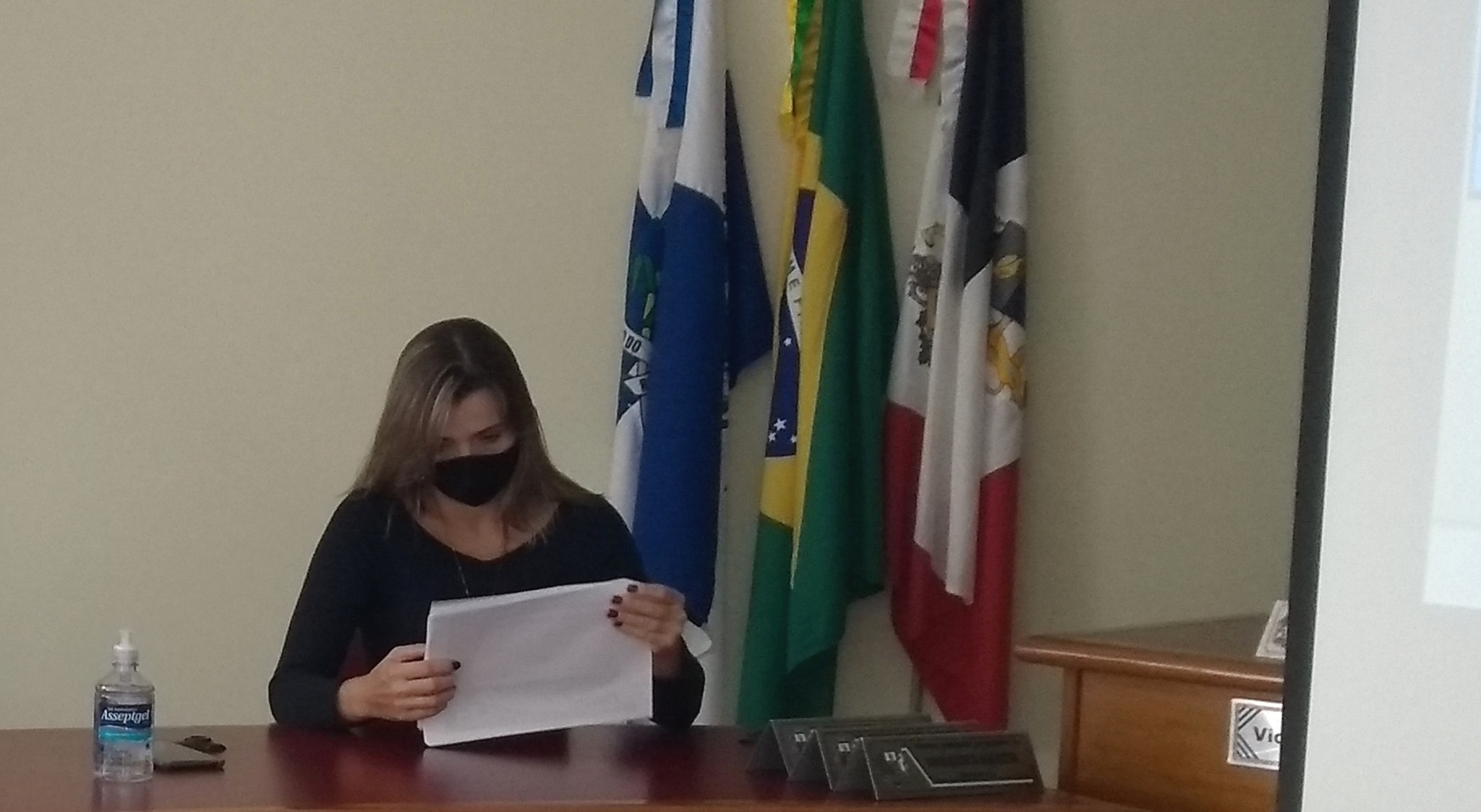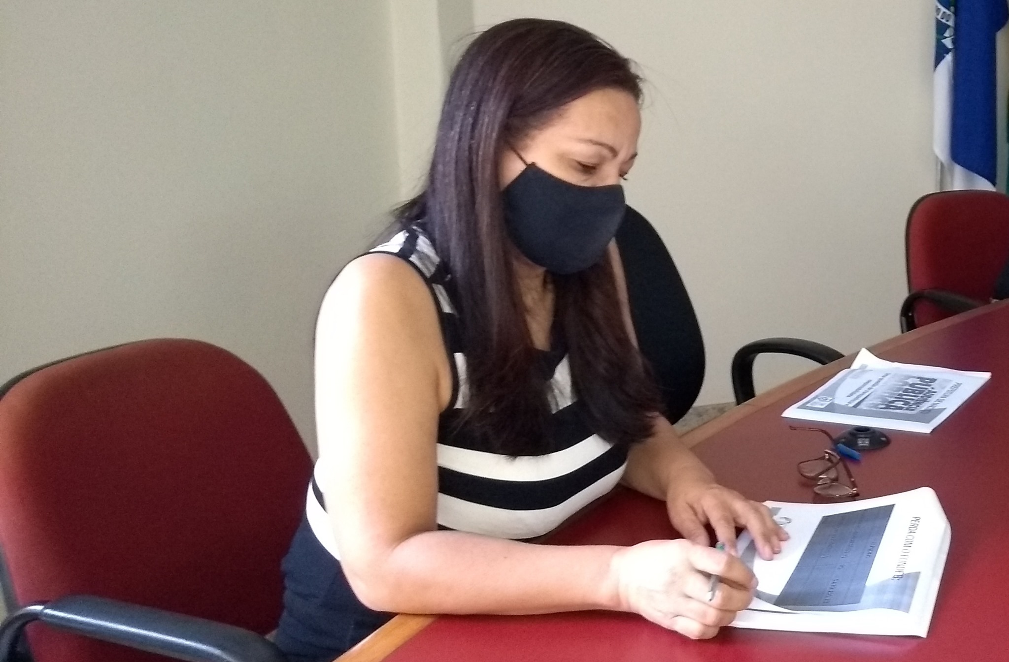 Débora Torres, secretária de Controle Interno, confere os relatórios expostos