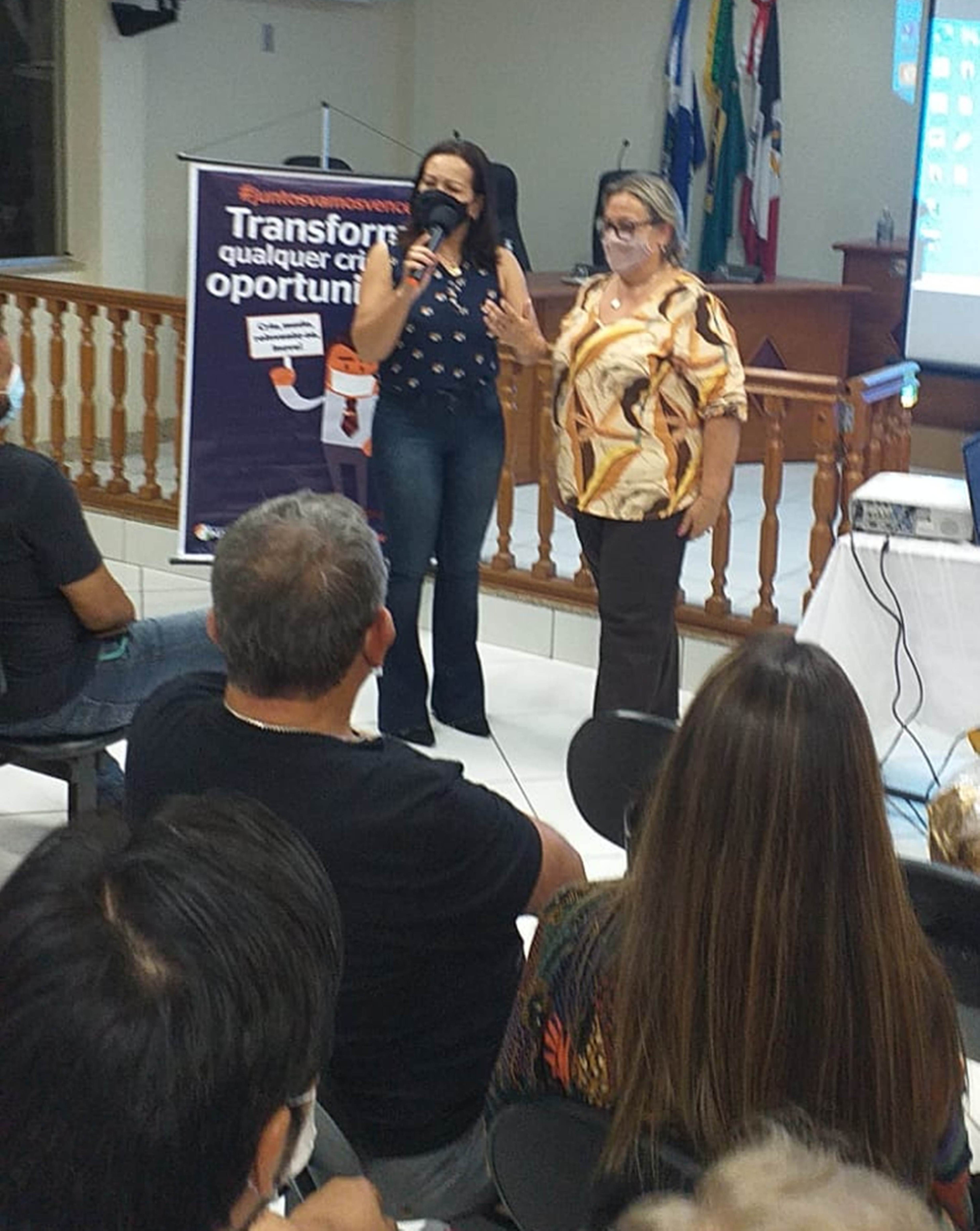Ao lado da palestrante, a secretária Eliane Ribeiro fez muitos agradecimentos e destacou o trabalho sequencial em prol dos empreendedores de Macuco