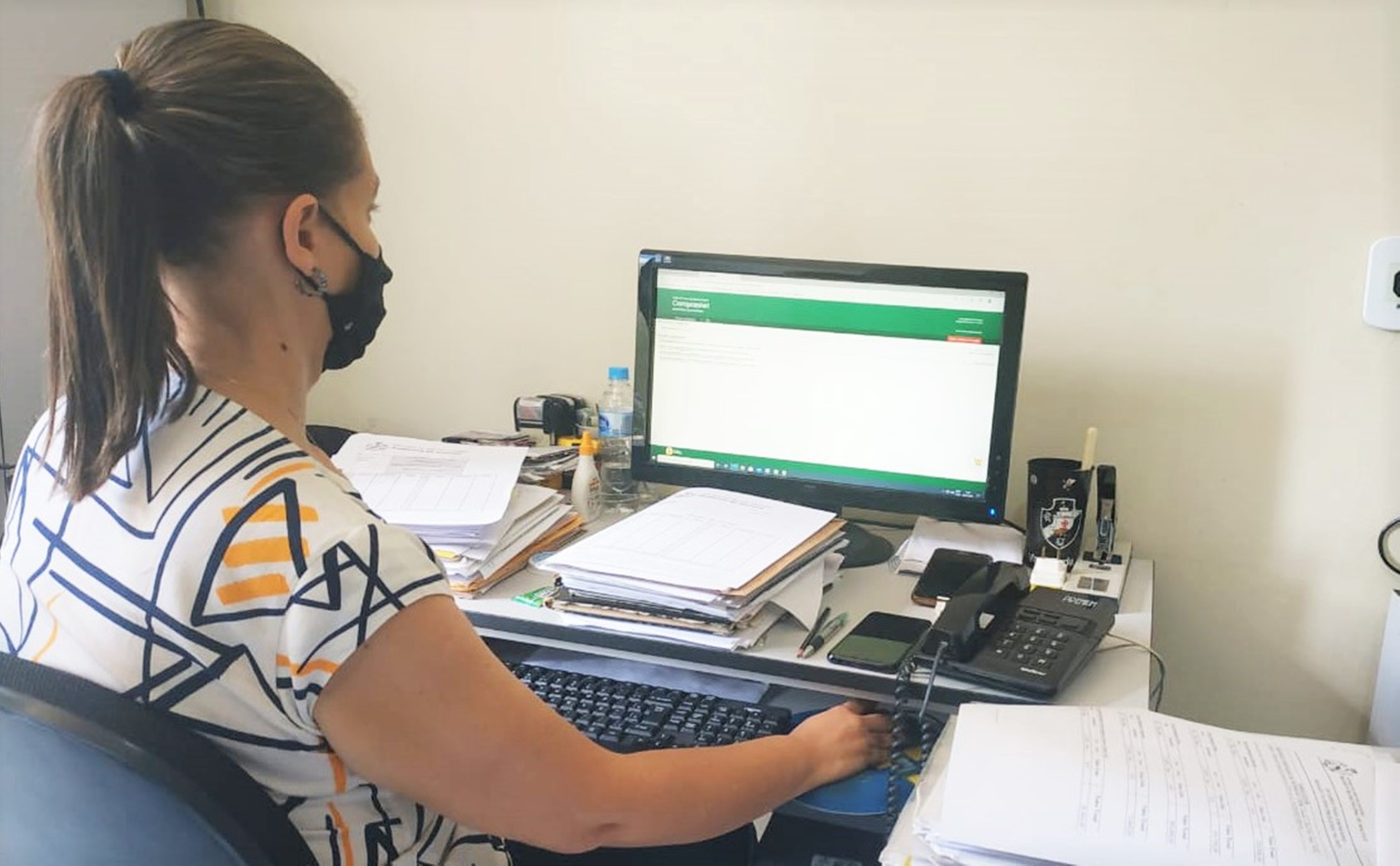 Servidora Rosi Cleide em ação durante a realização do Pregão Eletrônico