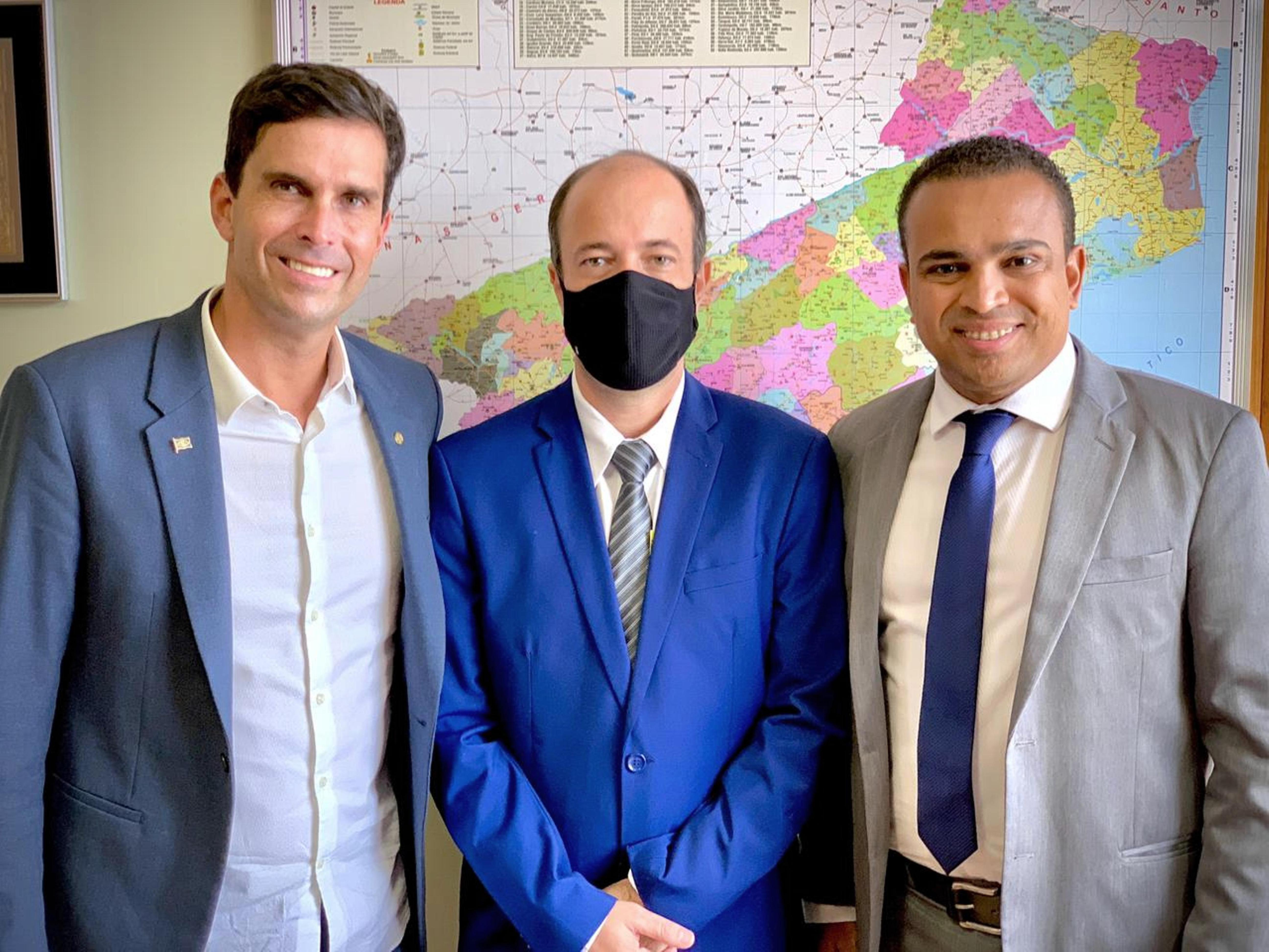 Bruno entre o deputado Luiz Lima (à esquerda) e seu assessor Welbert Pedro