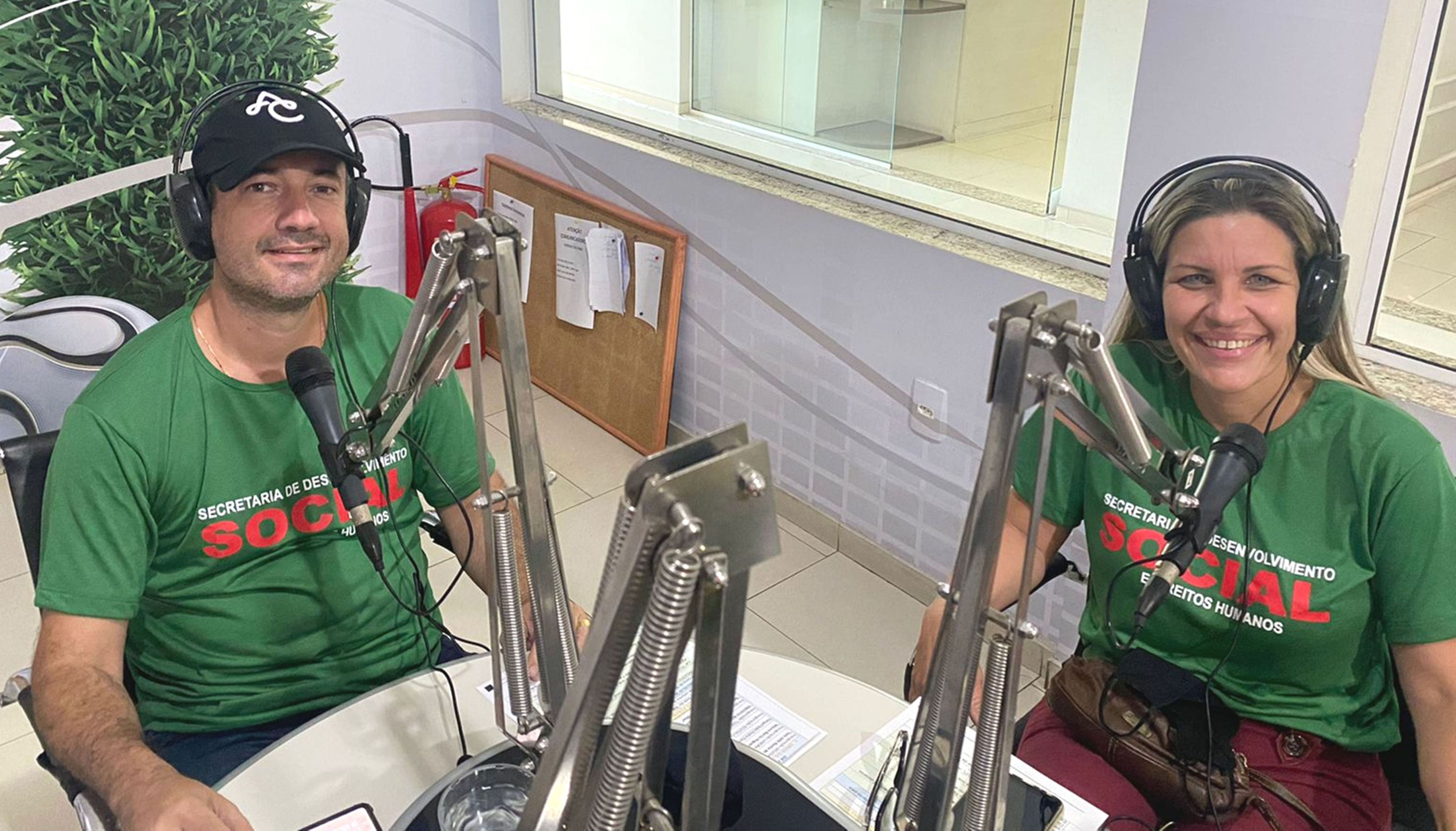 Prefeito Bruno Boaretto e sua vice-prefeita Michelle Bianchini momentos antes do início do programa Espaço Aberto, na Rádio 94 FM