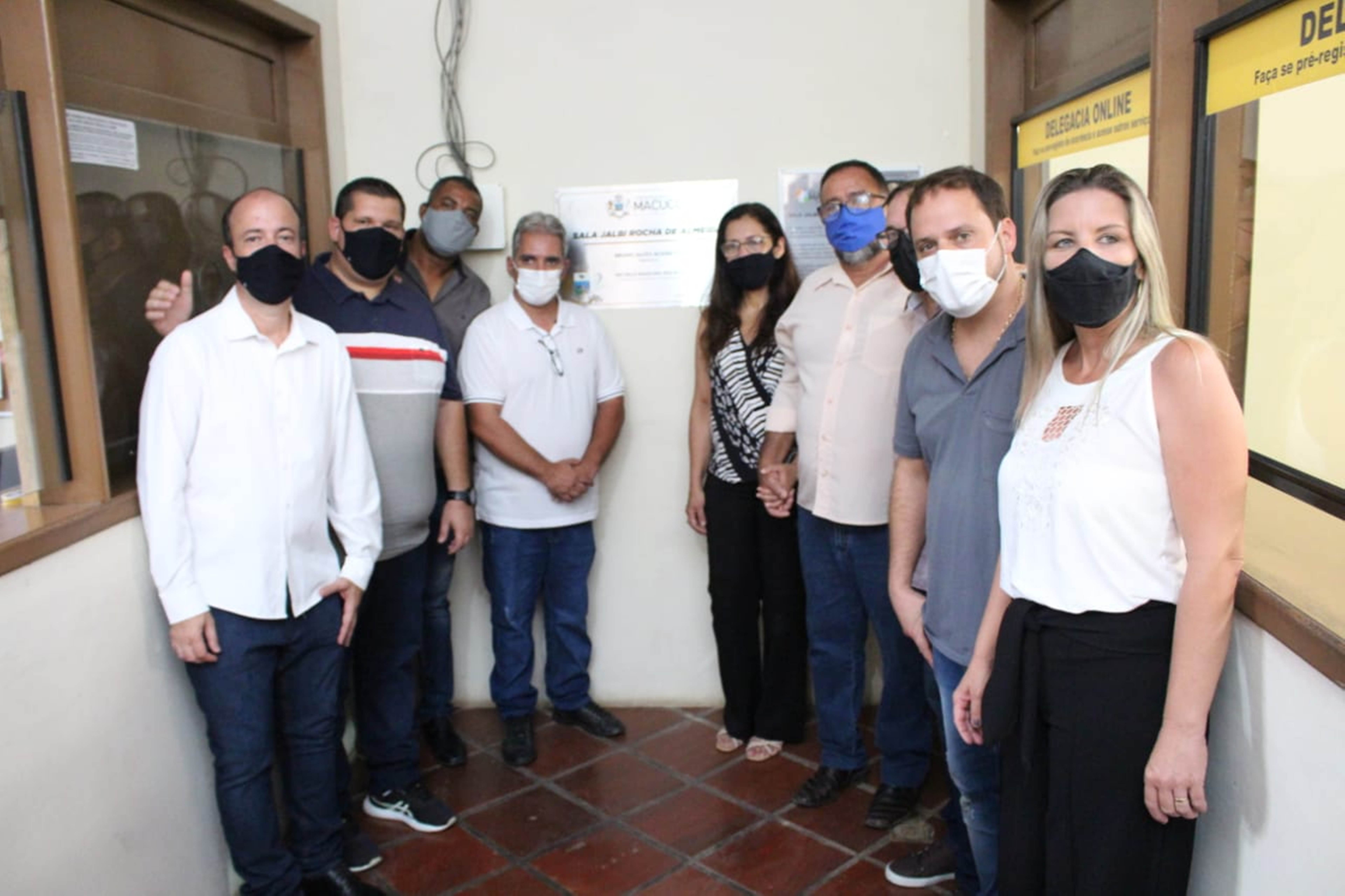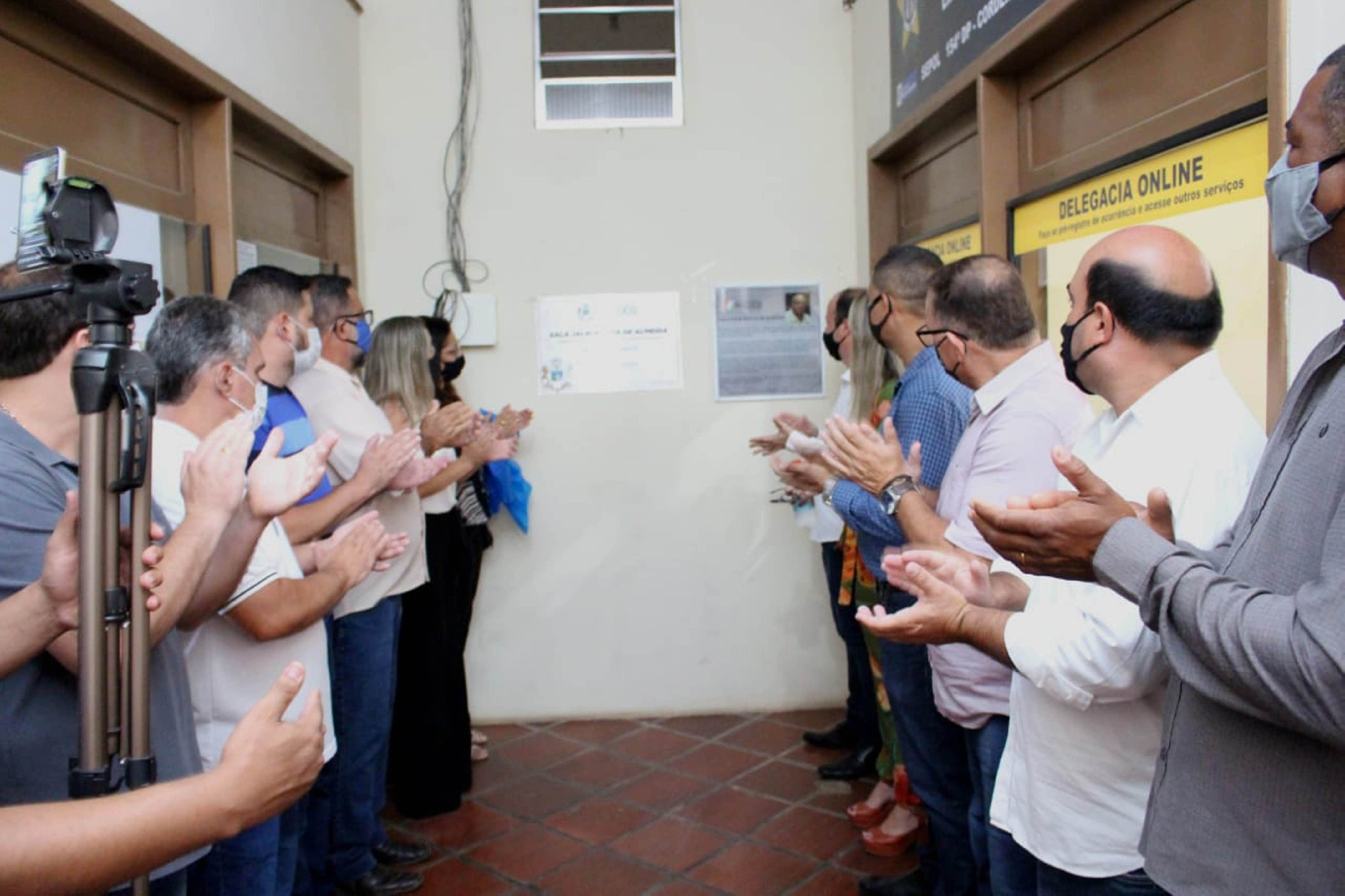 A entrou em cena com a visitação à Sala Jalbi Rocha de Almeida, com a presença de sua filha Márcia. O espaço, além de homenagear um ícone da emancipação e grande estudioso das questões dos limites do município, irá abrigar em breve a Delegacia Online da Polícia Civil. Os vereadores Alberto Herdy e Carlos Alberto Oliveira representaram, respectivamente, o Conselho Comunitário de Segurança e Comissão de Segurança da Câmara, enquanto Paulo Sérgio Daflon falou pela família.