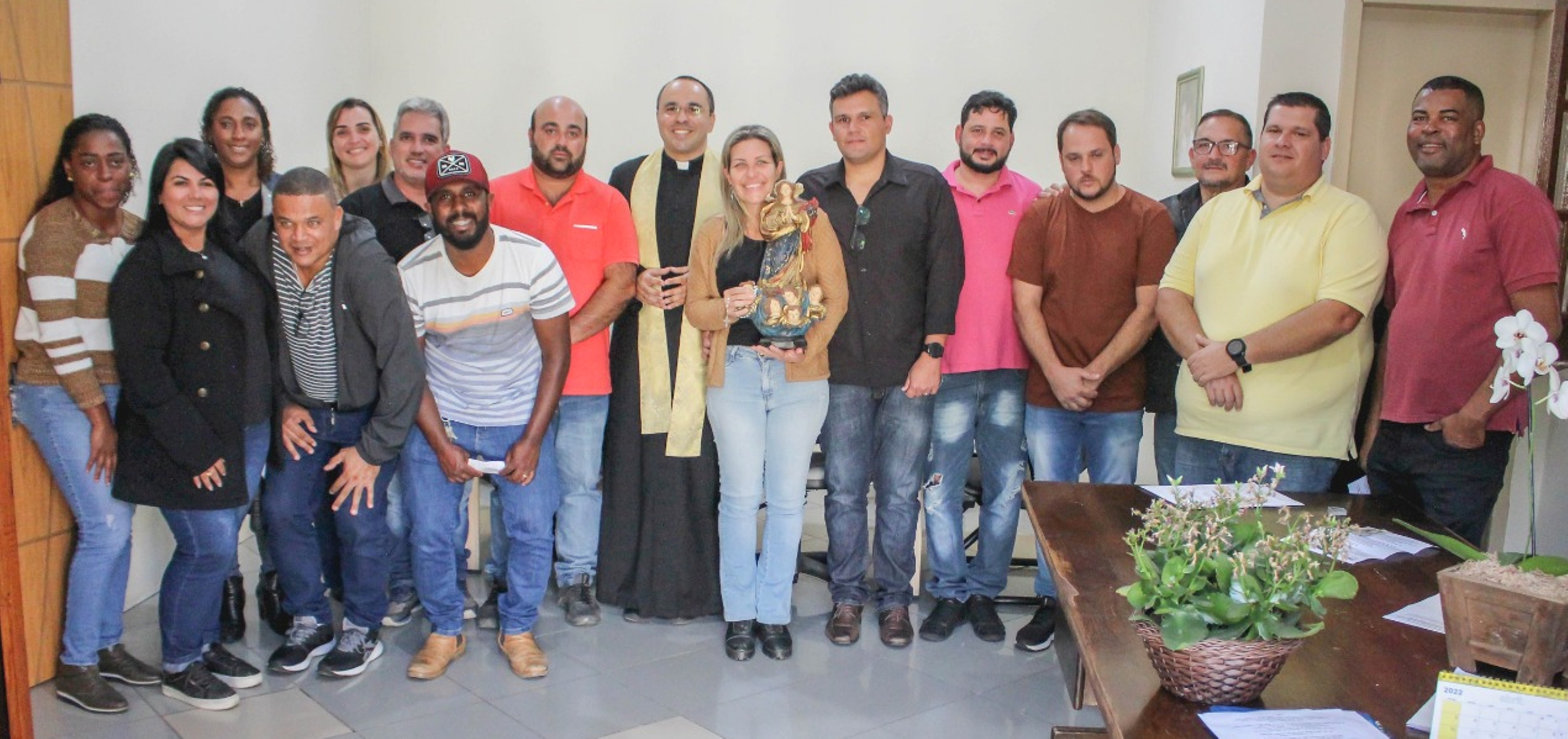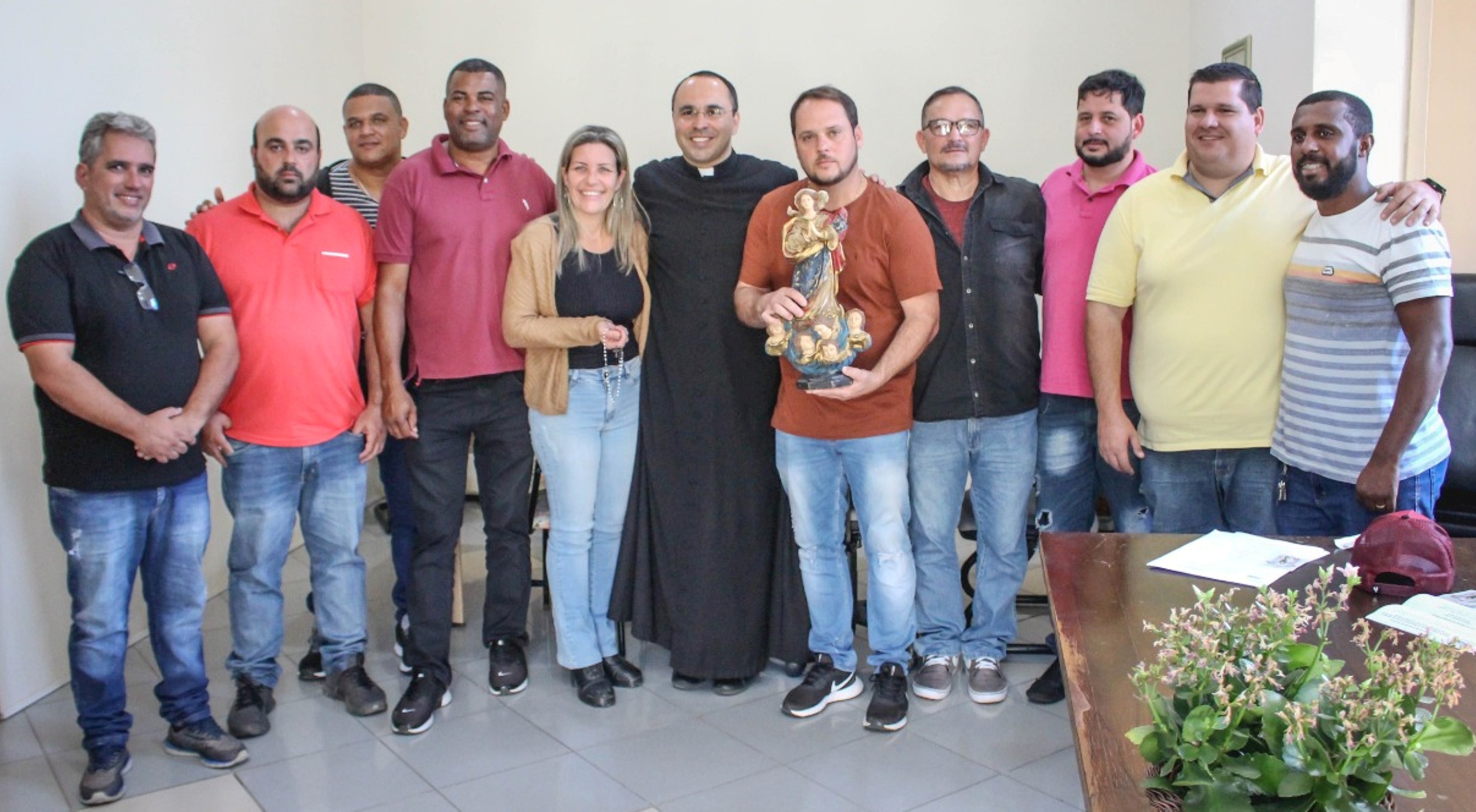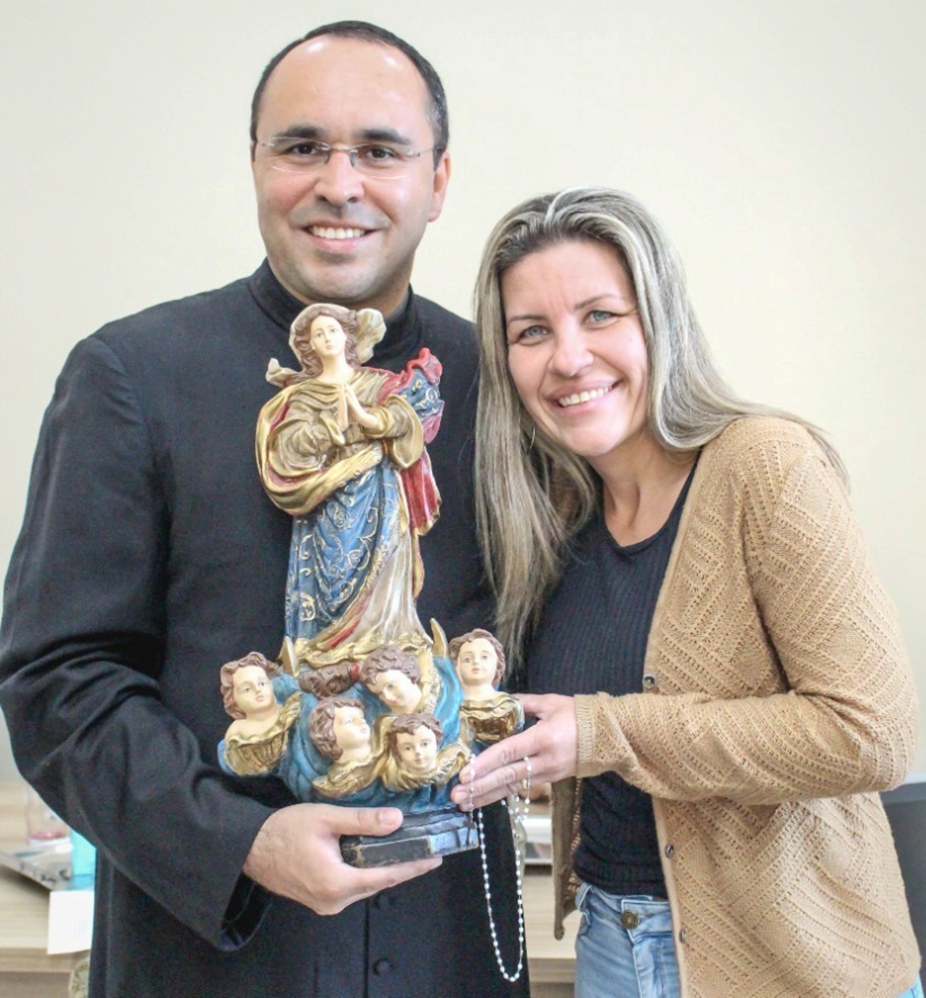 Em nome do Governo Municipal, a prefeita Michelle Bianchini e o secretário João Vitor Pontes receberam o padre com a imagem