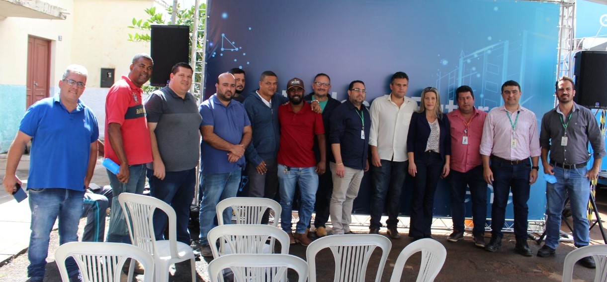 Autoridades da ENEL, vereadores, prefeita e secretário posaram para a foto durante a realização da caravana