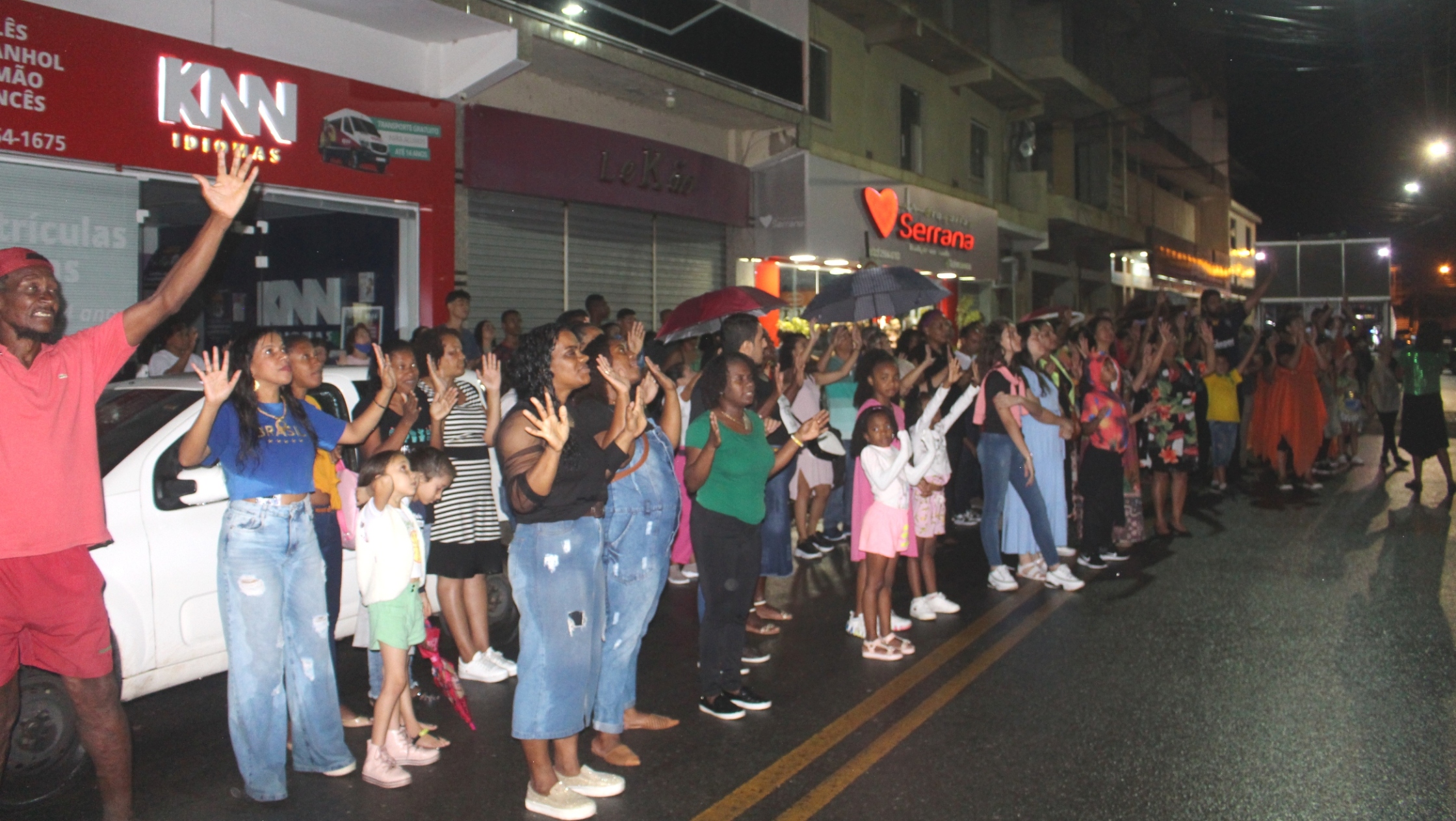 A chuva fina e intermitente que caía sobre o município na noite de sábado, 12 de novembro, talvez tenha sido o sinal das bênçãos que o Povo de Deus tanto precisava para elevar ainda mais seus louvores, reforçando as demonstrações de fé para clamar em direção aos céus que o Senhor Deus derramasse suas benesses sobre a população.