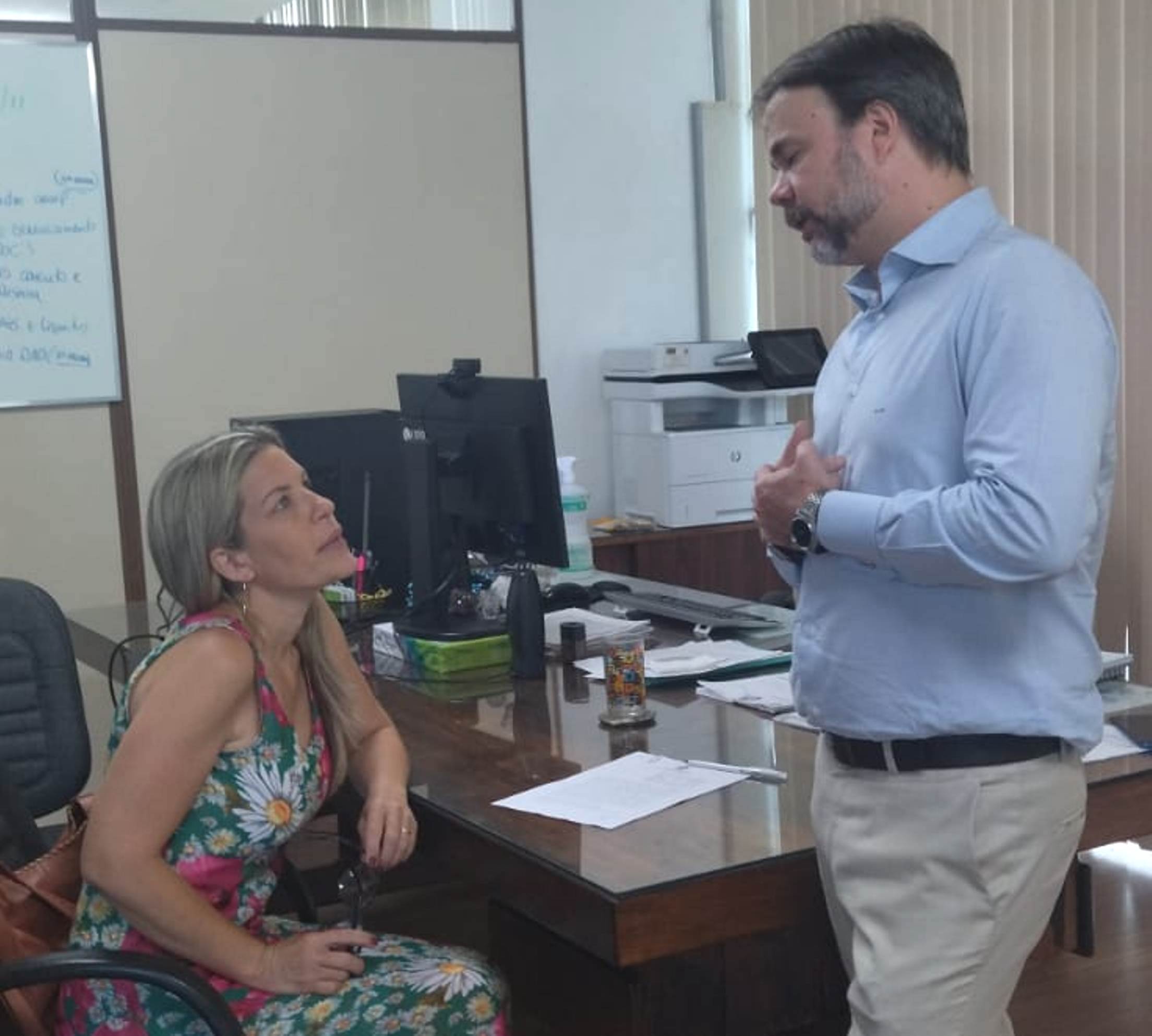 Antes da assinatura do documento, prefeita Michelle Bianchini conversa com o vice-presidente do DER-RJ, Gladstone Santana
