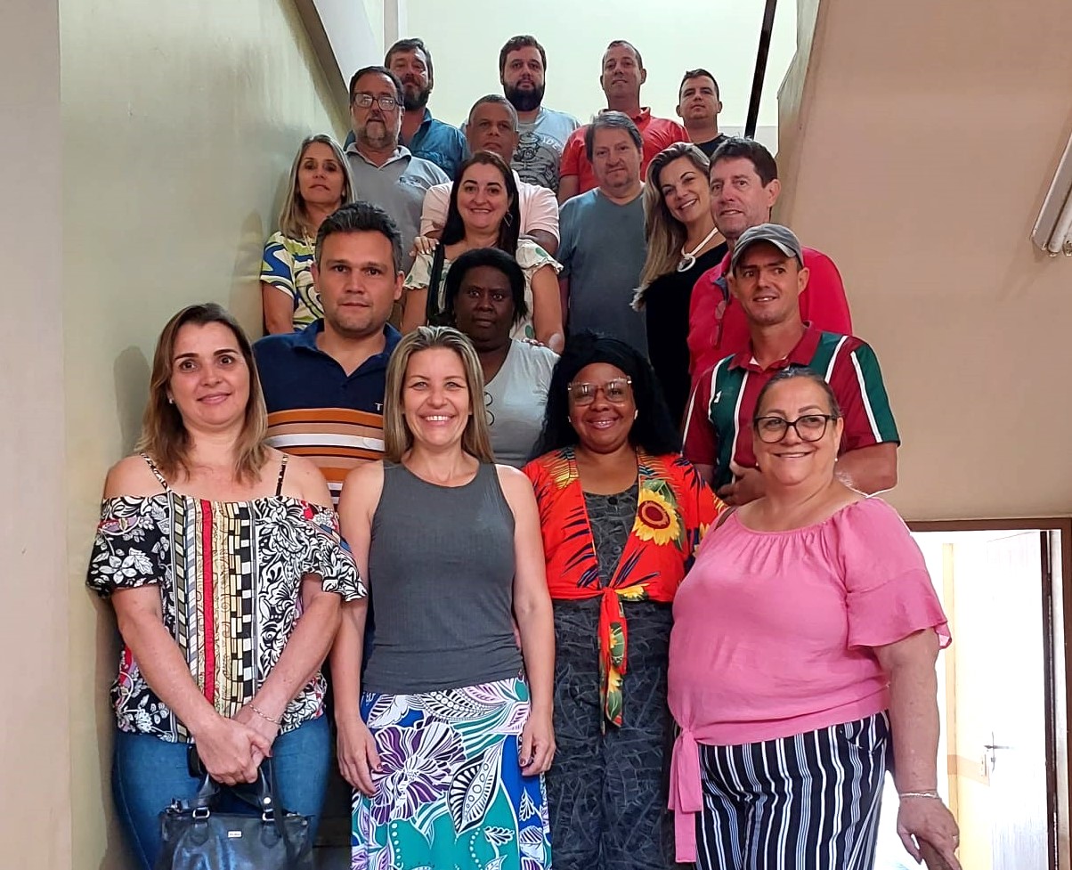 Foto feita na escadaria da sede da Prefeitura de Macuco marcou o final do encontro de secretários nesta quinta-feira