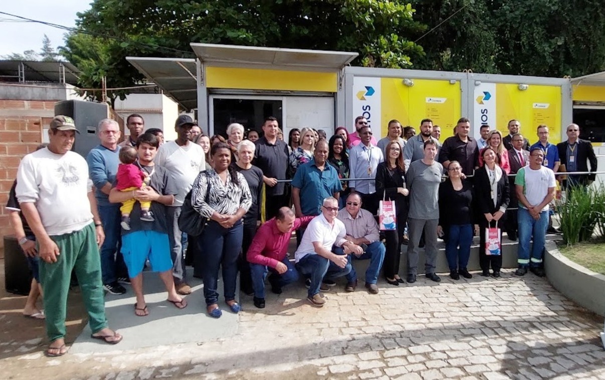 Uma foto reunindo autoridades, equipe dos Correios e populares não poderia faltar para marcar a solenidade