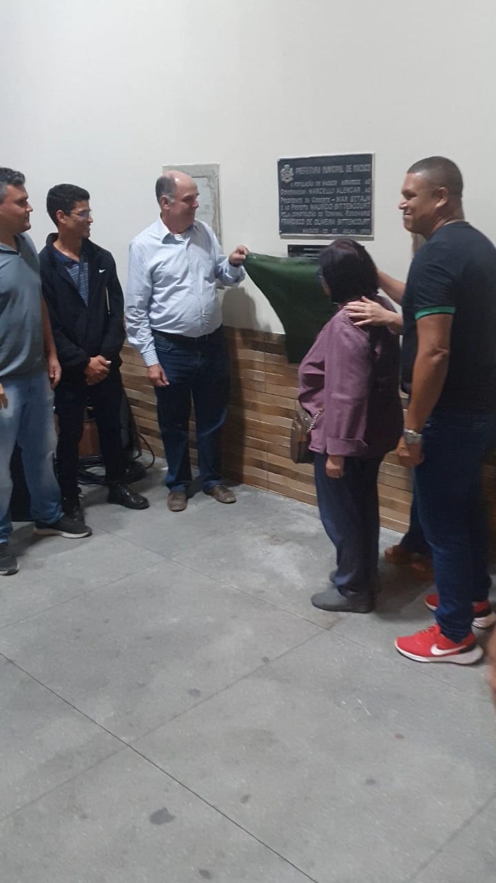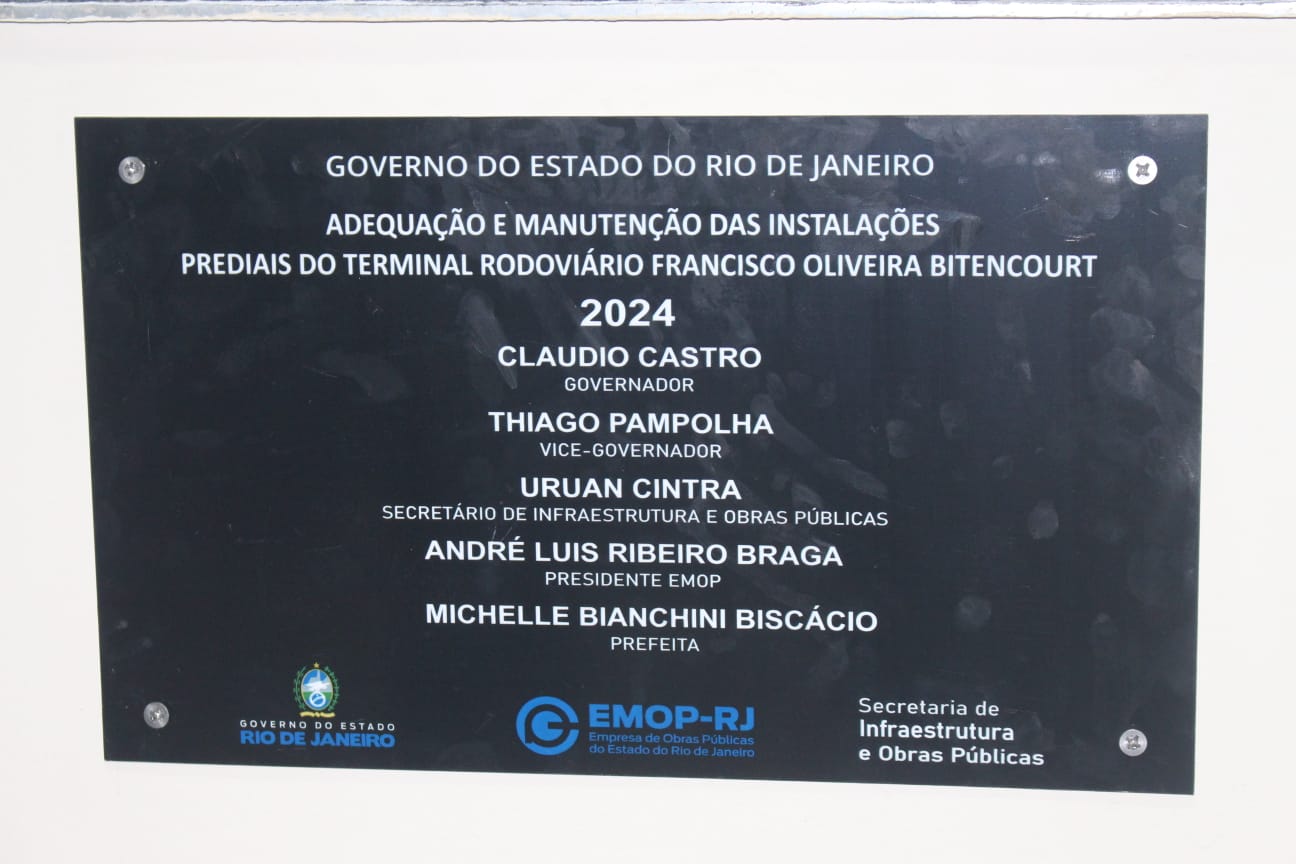 Placa da inauguração expõe o objetivo do trabalho realizado no Terminal Rodoviário de Macuco