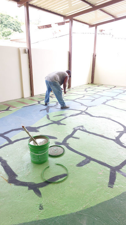 Dentre os serviços realizados nos educandários do município estão a pintura, como mostra a ação do profissional na Bath Rosas