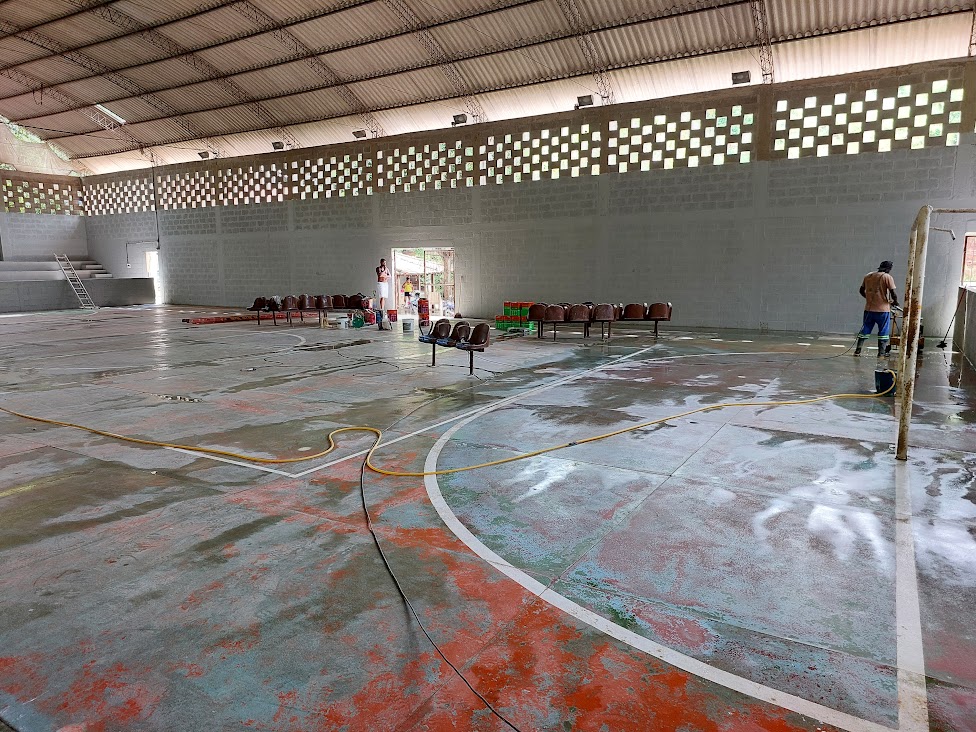 Em ritmo bem intenso também estão os serviços de pintura e reforma de banheiros, entre outras ações, na Quadra de Esportes Augusto Tralli, na Barreira
