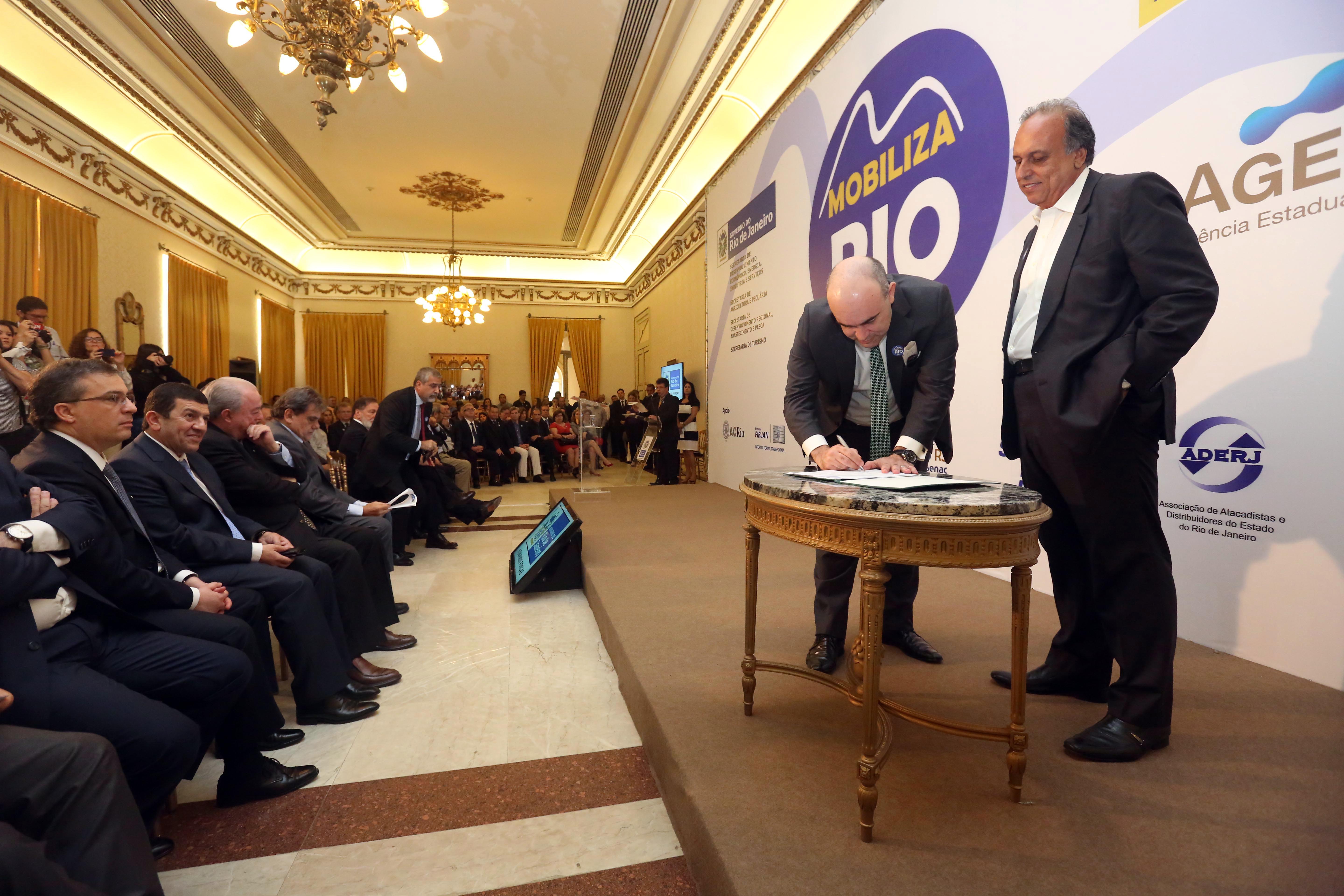 O governador Luiz Fernando Pezão e o secretário de Desenvolvimento Econômico, Marco Capute, assinaram sete contratos de liberação de crédito do Banco do Brasil para micro, pequenas, médias e grandes empresas fluminenses, como forma de validar o Mobiliza Rio. A ação conta com o apoio de diversas entidades vinculadas ao setor produtivo, e através do financiamento de variadas atividades, proporciona geração de emprego e renda, além de ser instrumento de diversificação da economia.
