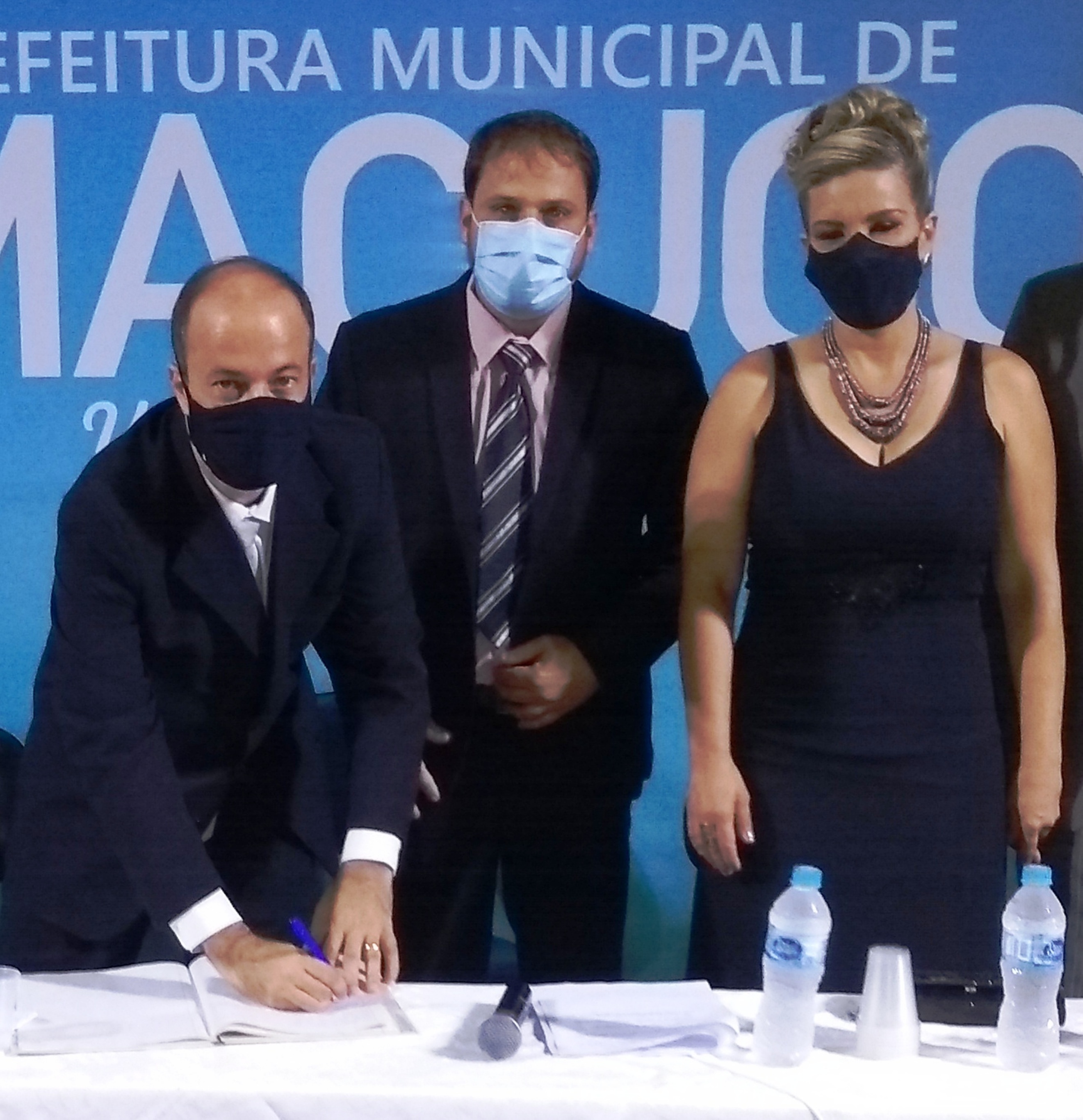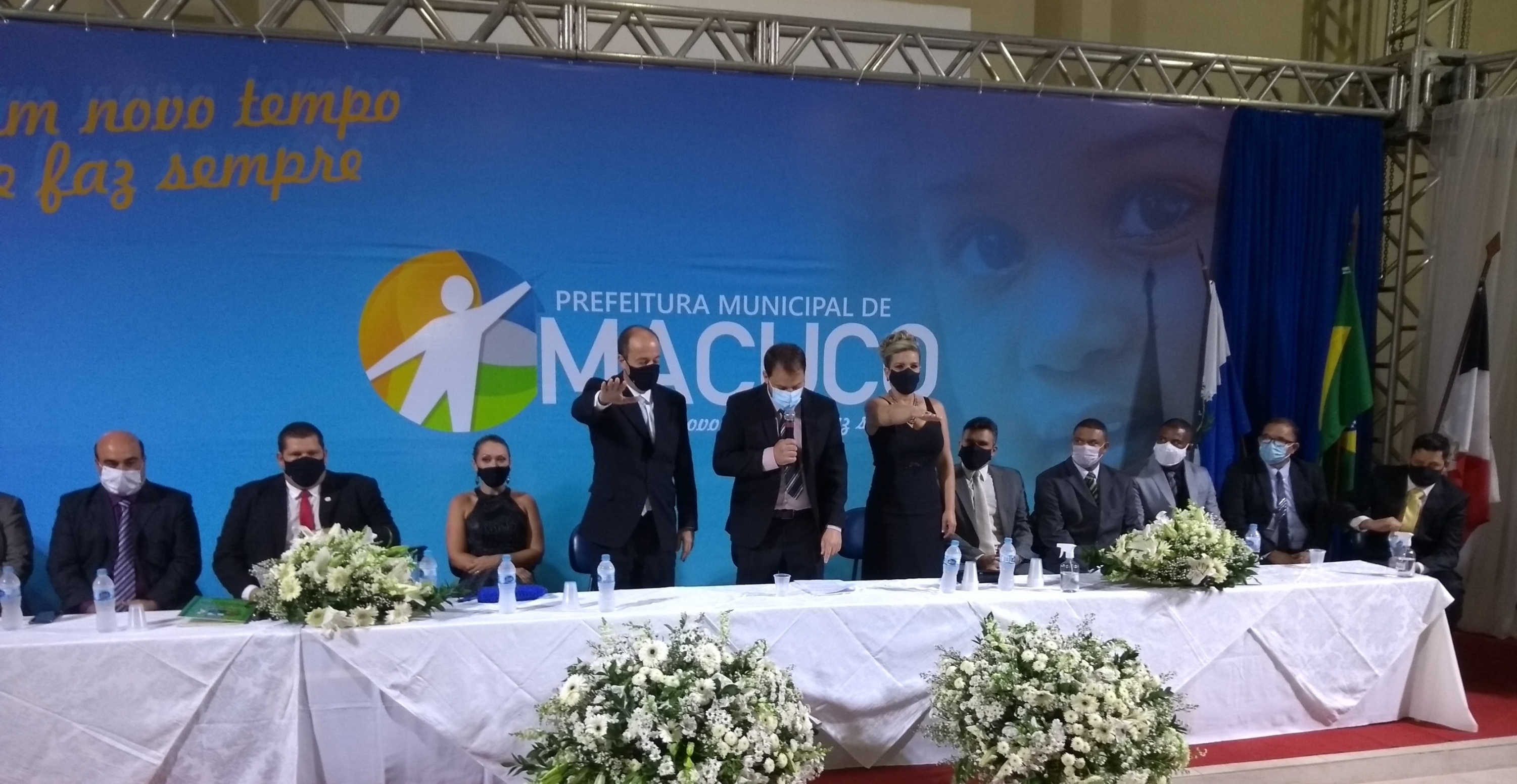 Realizada no Rural Park, nesta sexta-feira, 01 de janeiro, a posse de Bruno e Michelle – que iniciaram seu segundo mandato – contou apenas com a presença de familiares dos eleitos, lideranças eclesiásticas, secretários de governo e representantes da imprensa. Conduzido pelo presidente eleito para o biênio 2021/2022 do Poder Legislativo Macuquense, vereador Julio Badini, a posse também recebeu como convidado Leonan Melhorance, prefeito de Cordeiro, que estava acompanhado do vice Elvis Mutti e do presidente do Legislativo Cordeirense Pablo Sergio.