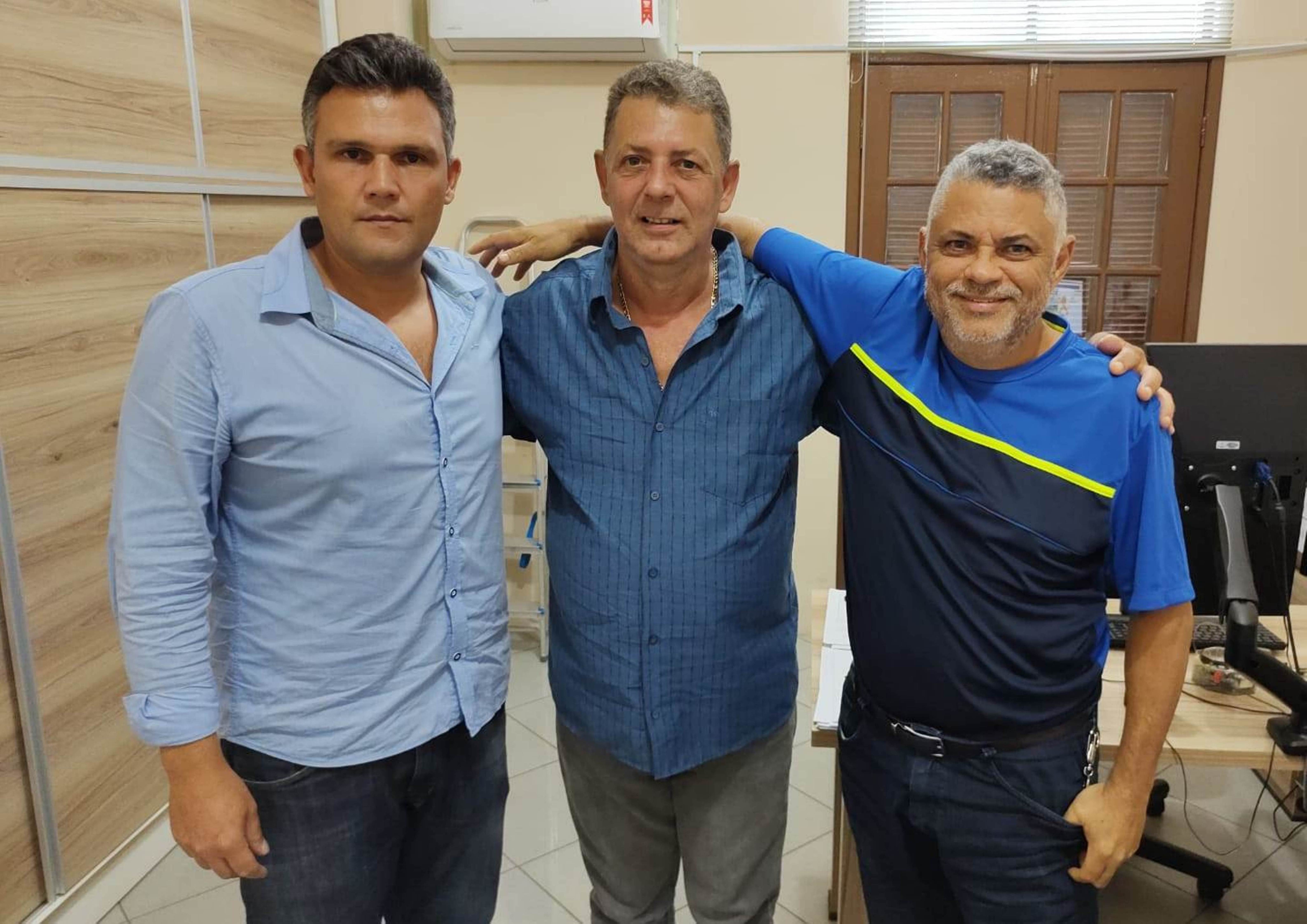 João Vitor ao lado de dois integrantes da equipe do Gabinete da Prefeita, Wilson Cardoso e Idésio Curty