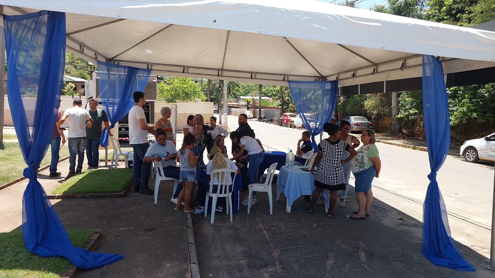 Equipes reunidas sob a tenda para atuar nas movimentações do projeto Gestão Presente no bairro da Reta