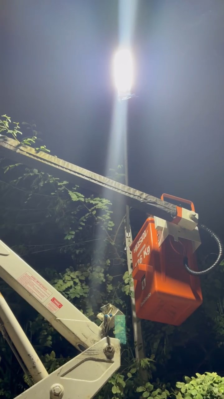 Mais uma das ruas aonde o caminhão e os profissionais passaram executando os serviços na rede de iluminação