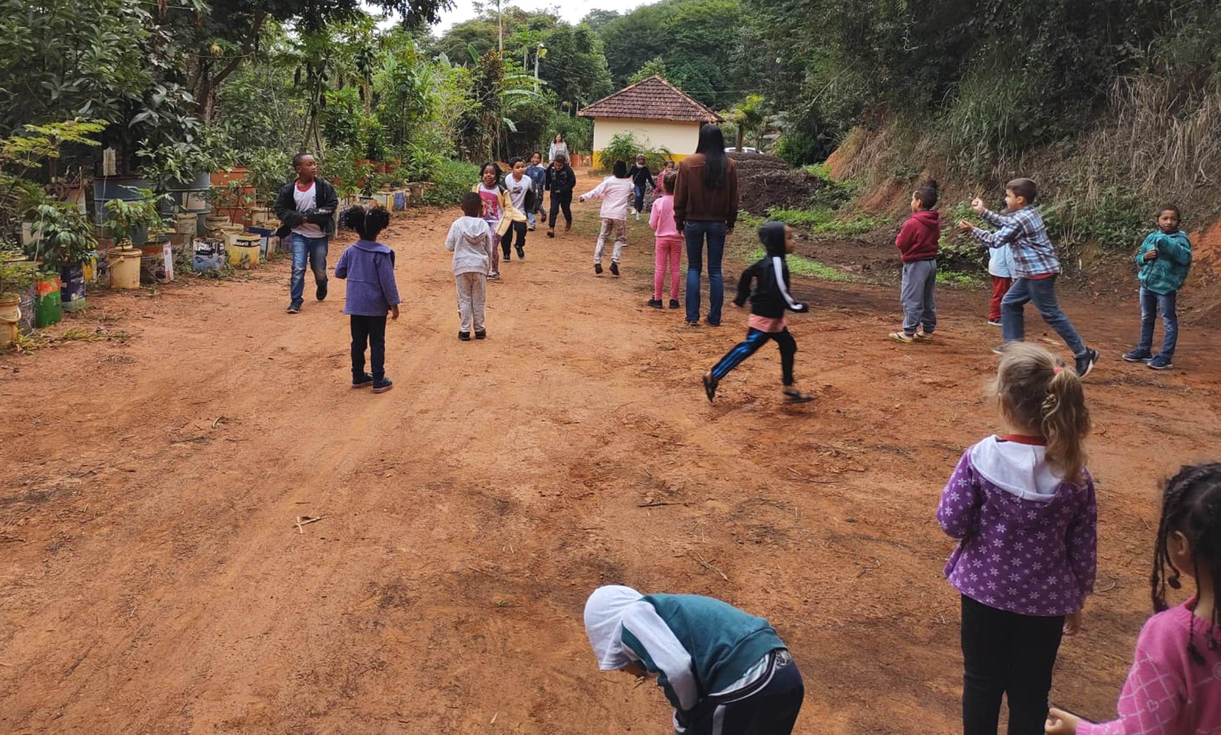 Vivenciando novas experiências no Horto Municipal, foi difícil para a criançada esconder o sorriso