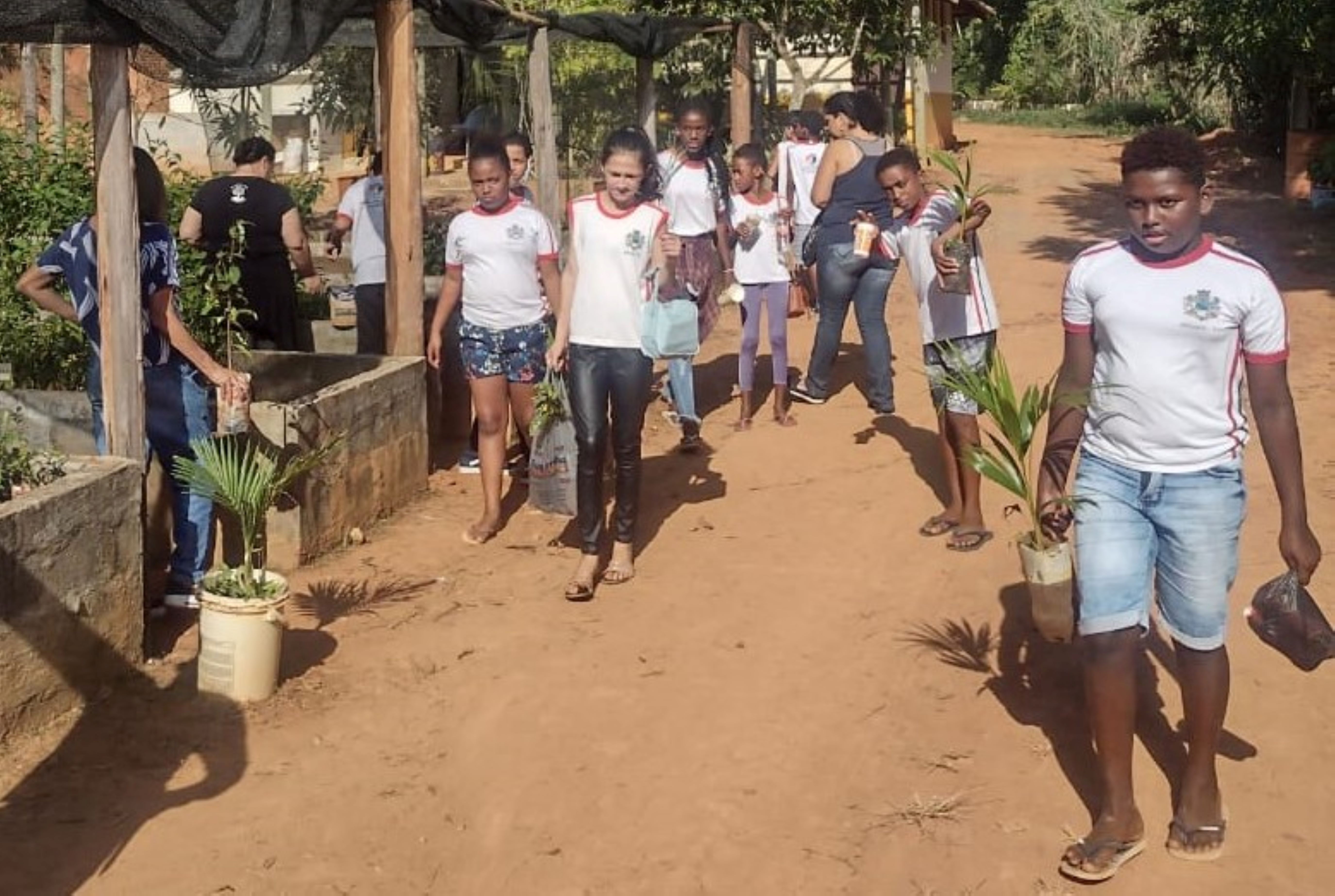 Garotada do CIEP também foi presenteada com mudas nativas, reforçando as lições de plantio e preservação das espécies