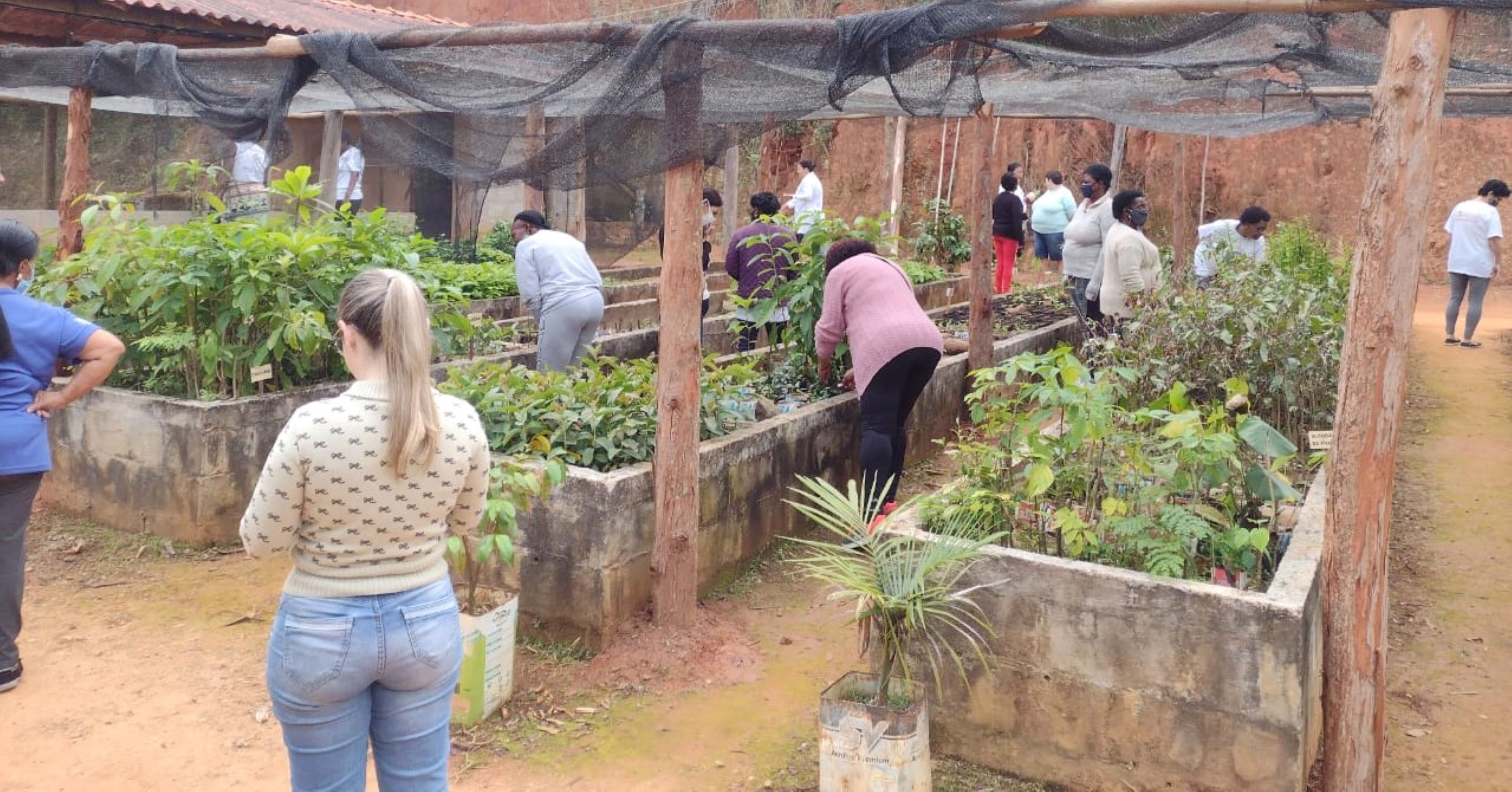 Os ‘jovens da Terceira Idade’ também se misturaram à paisagem verde dos canteiros do horto onde estão as mudas nativas