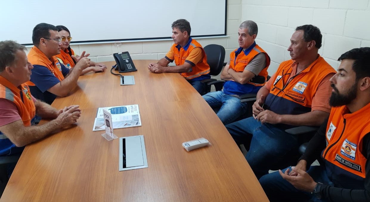 Integrantes da Defesa Civil conversam sobre a visitação, que versou sobre o Plano de Ação Emergencial