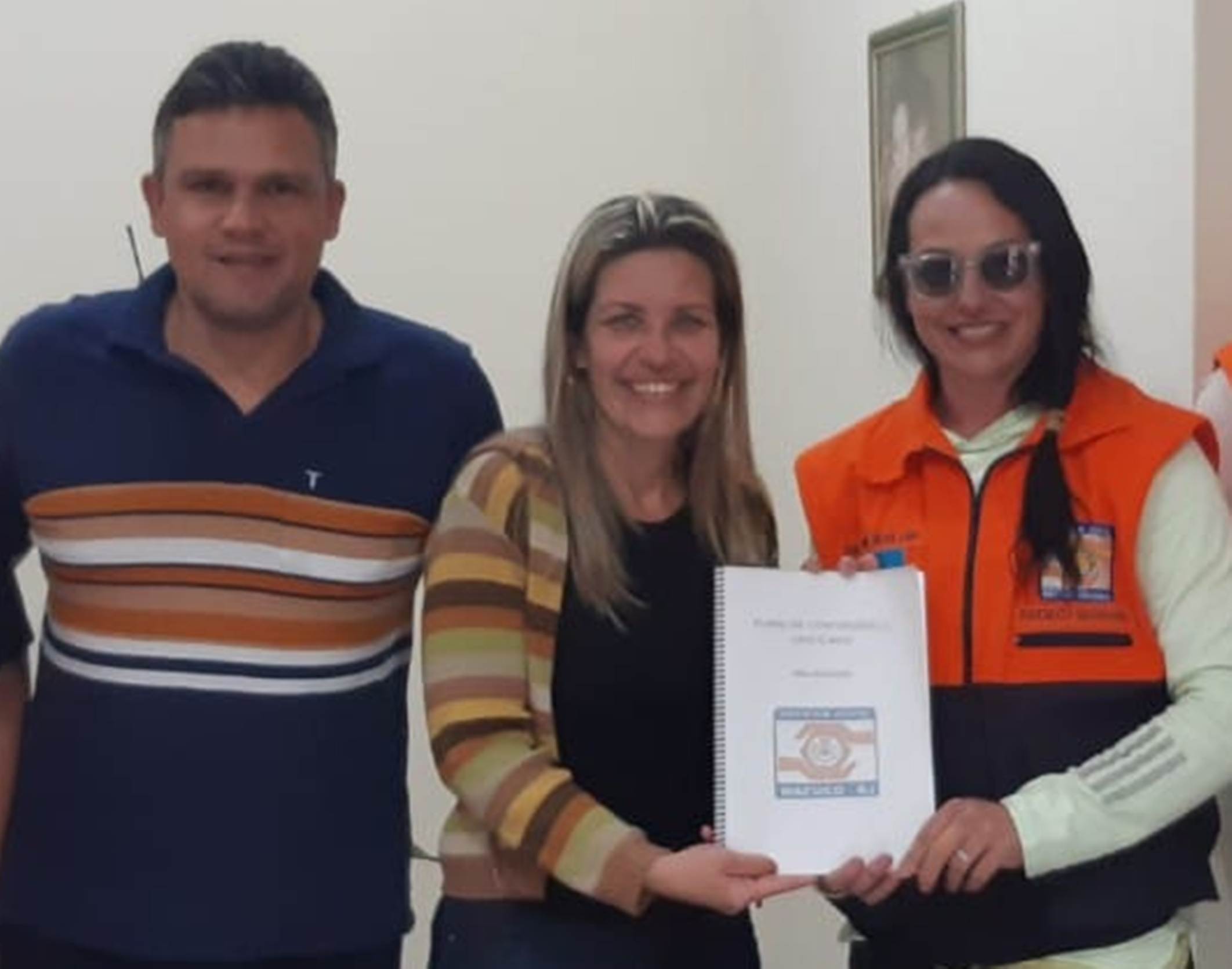 Prefeita Michelle Bianchini, coordenador de Defesa Civil de Macuco Paulo Sergio Machado e coordenadora da REDEC/Serrana Tenente Silvia Lima