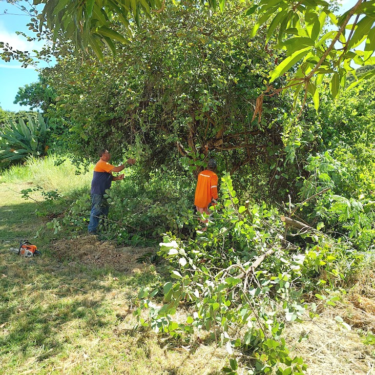 Flagra das equipes de Meio Ambiente e Defesa Civil trocando ideias num dos momentos do desenrolar dos serviços