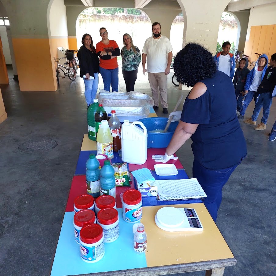 Durante o tempo em que vem trabalhando a divulgação da FLIMAC – Feira Literária de Macuco, que acontece no centro da cidade, entre os dias 26 e 27 de maio, com atrações diversificadas –, foi feita uma ampla campanha para recolhimento do óleo de cozinha utilizado nas residências, que posteriormente foi então destinado à essa confecção do sabão em barra, cuja metodologia foi conduzida pelos adultos, que manusearam corretamente todos os insumos, respeitando os critérios técnicos de prevenção e em local aberto, com os estudantes apenas observando o processo à distância.
