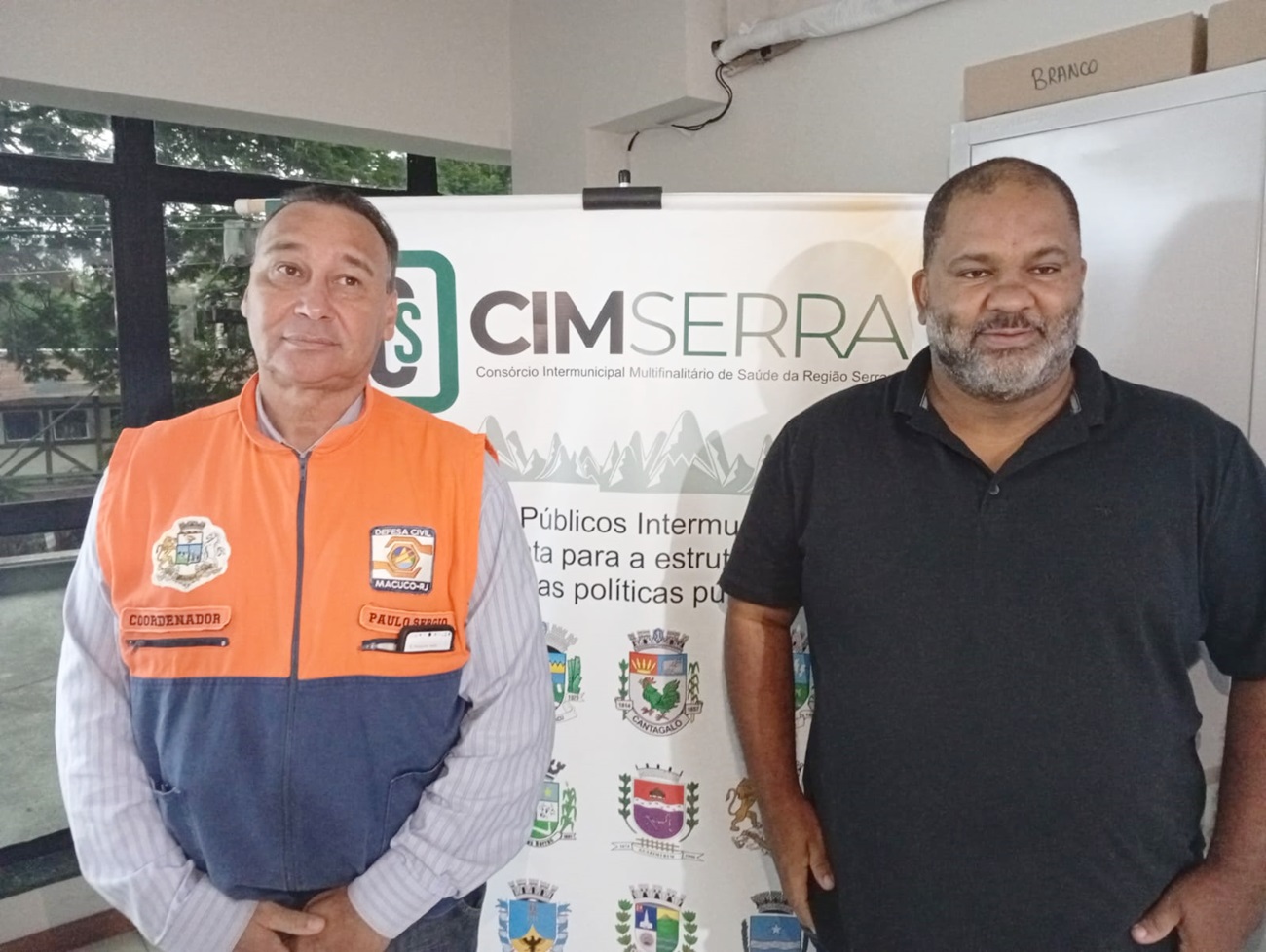Paulo Sérgio Machado, coordenador de defesa Civil de Macuco, e seu assessor André Coelho durante o encontro em Teresópolis