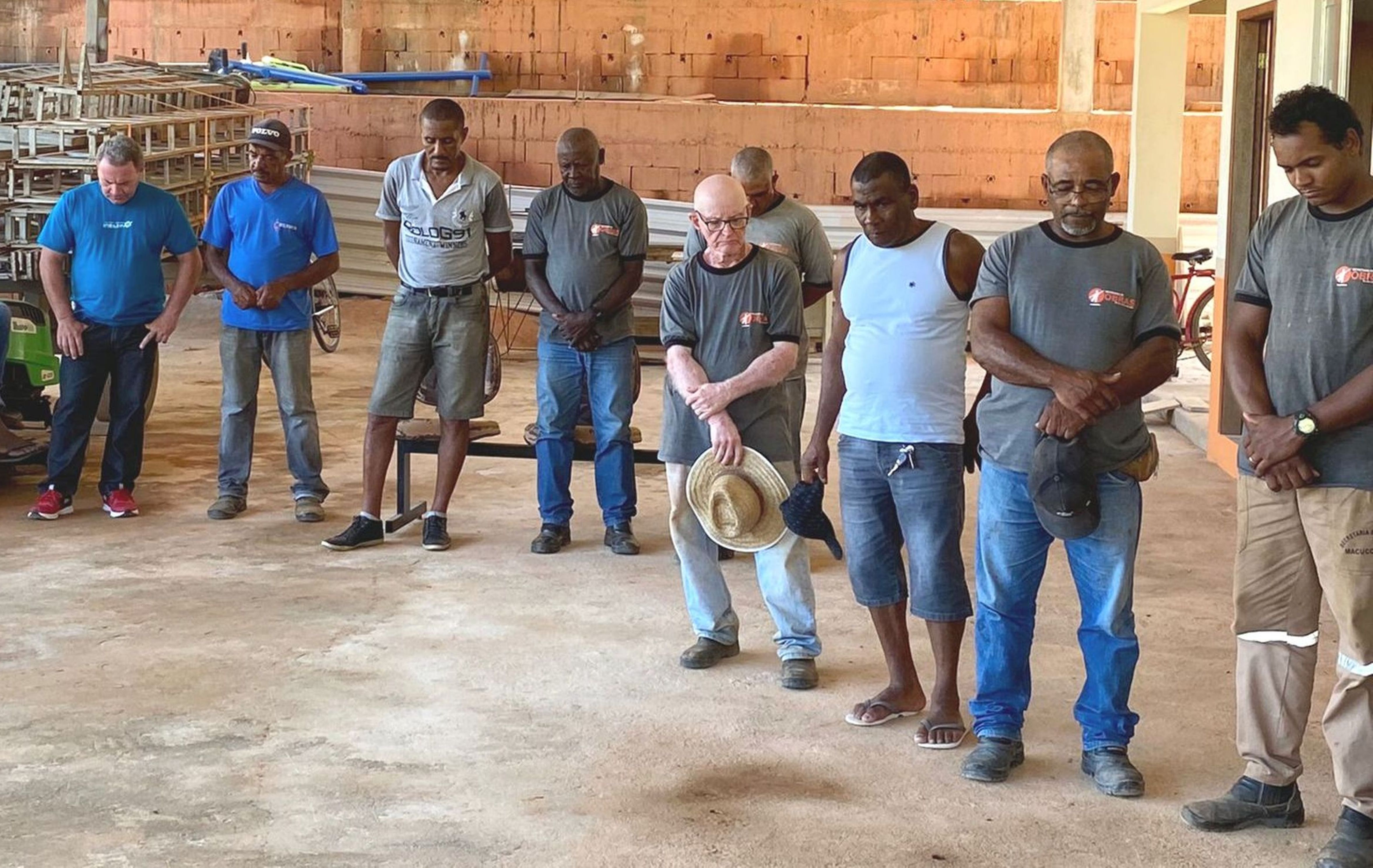 Num momento de elevação dos pensamentos a Deus, servidores da Secretaria de Obras demonstraram sua fé acompanhando as orações feitas por um companheiro