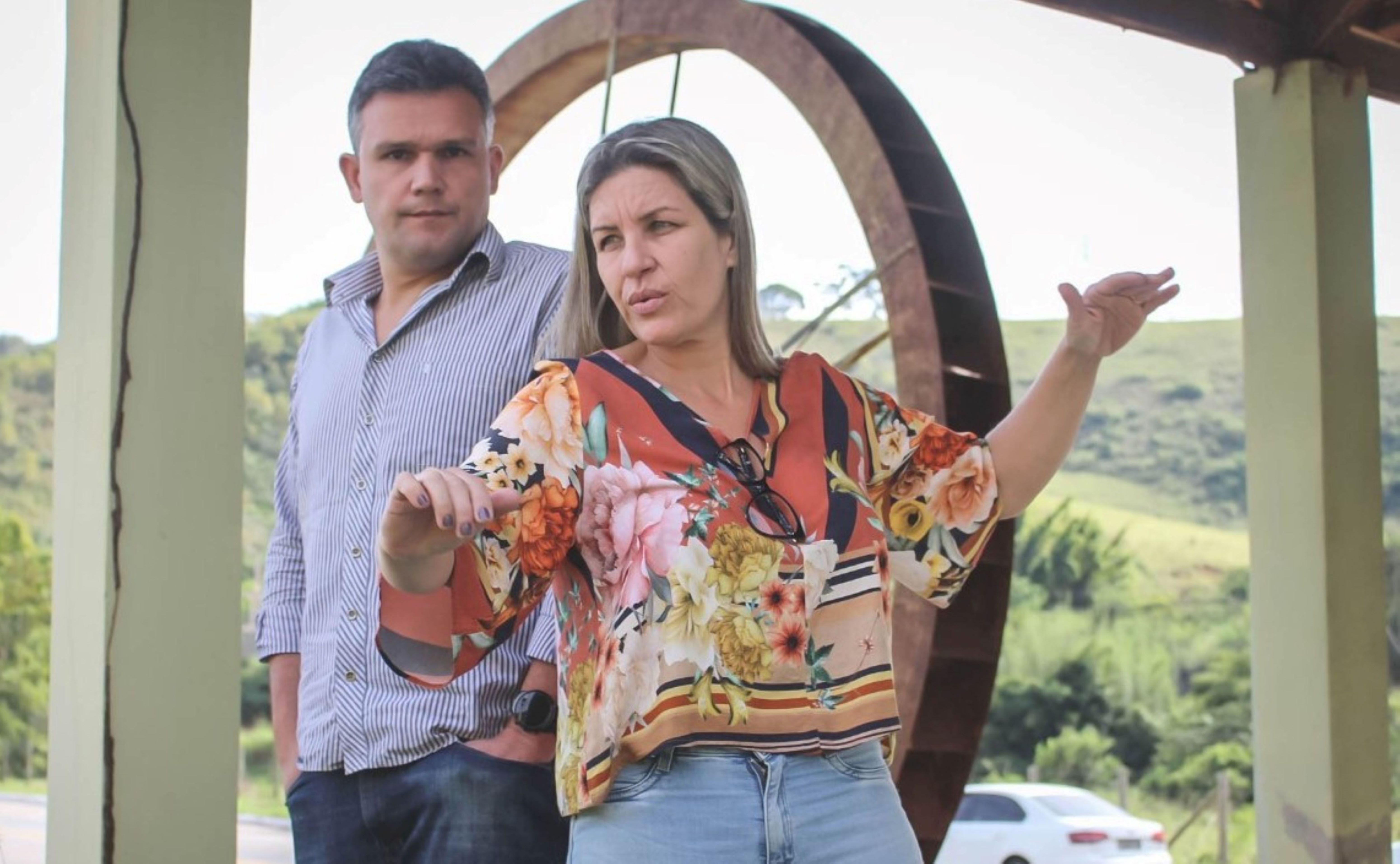 Ao lado do esposo e secretário de Governo, a prefeita Michelle Bianchini fez suas observações sobre o pórtico