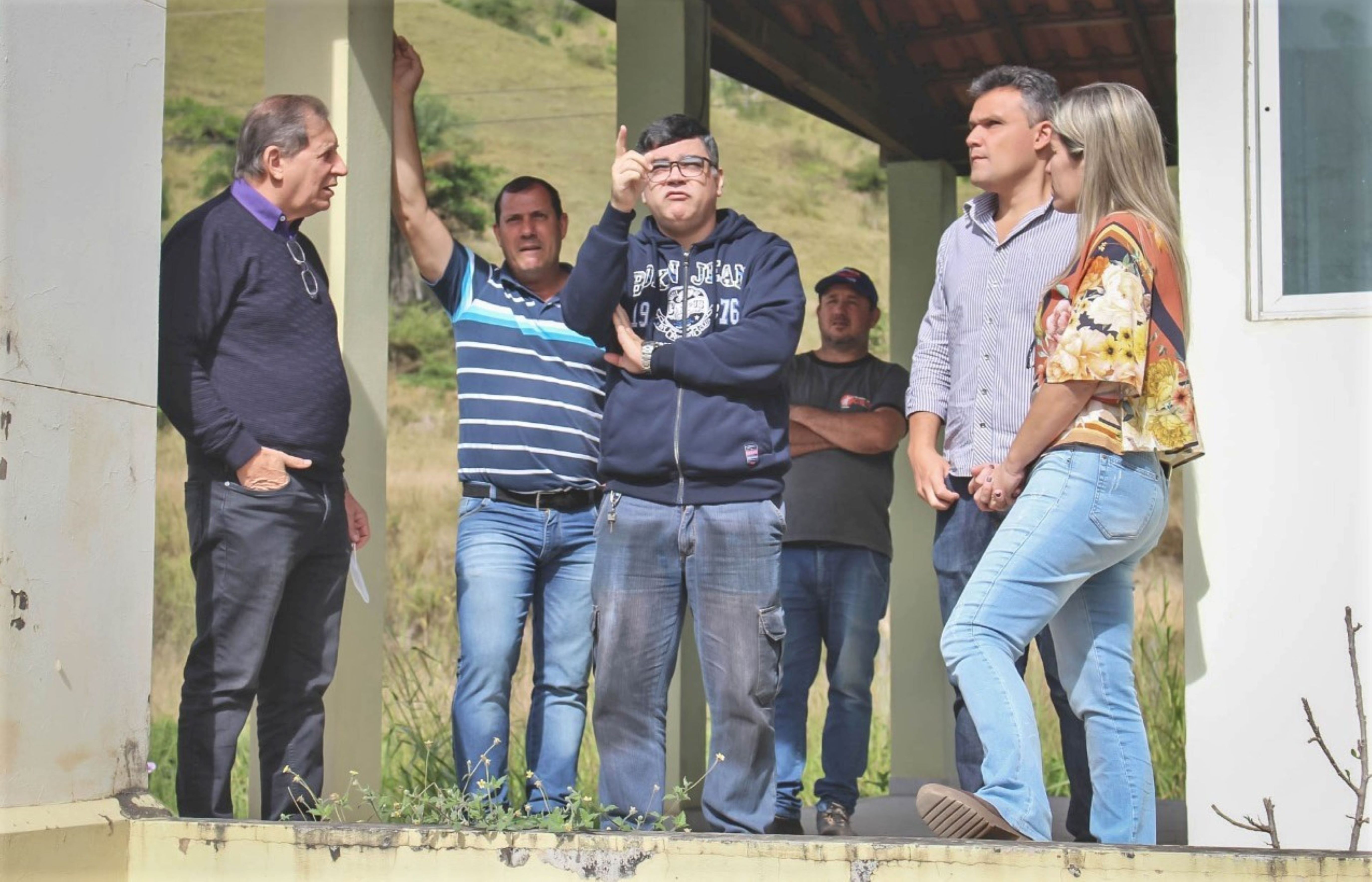 O secretário Marquinhos da Obra (ao fundo) faz algumas ponderações enquanto os demais visitantes observam