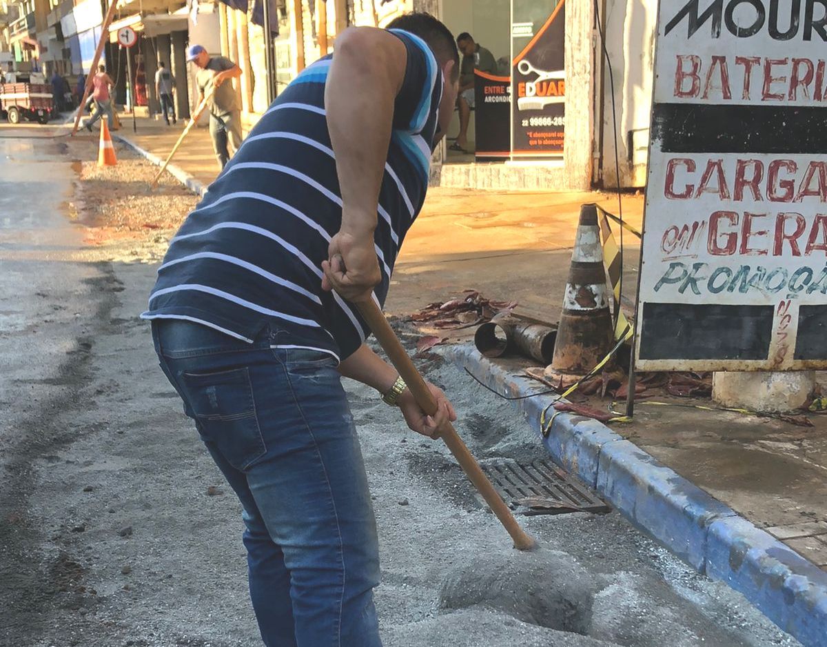 Até o secretário de Obras Marcos Boquimpani pôs a ‘mão na massa’ para garantir a finalização dos serviços