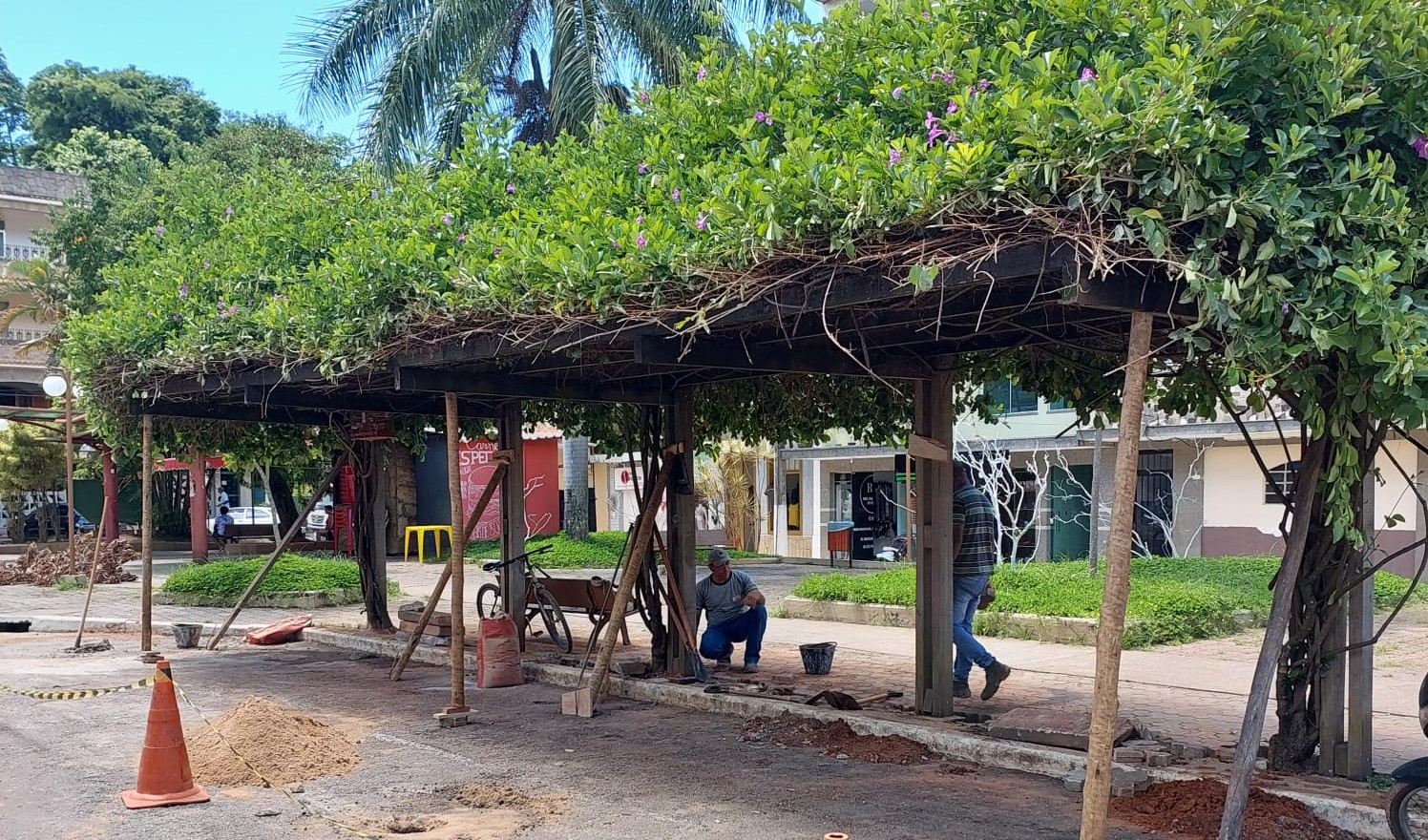 Funcionários da Secretaria de Obras cuidam constantemente dos meios-fios e de outras estruturas importantes da praça central