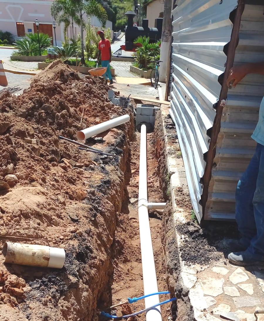Nas proximidades do Coreto da Praça, as manilhas antigas e desgastadas foram substituídas por tubos de PVC