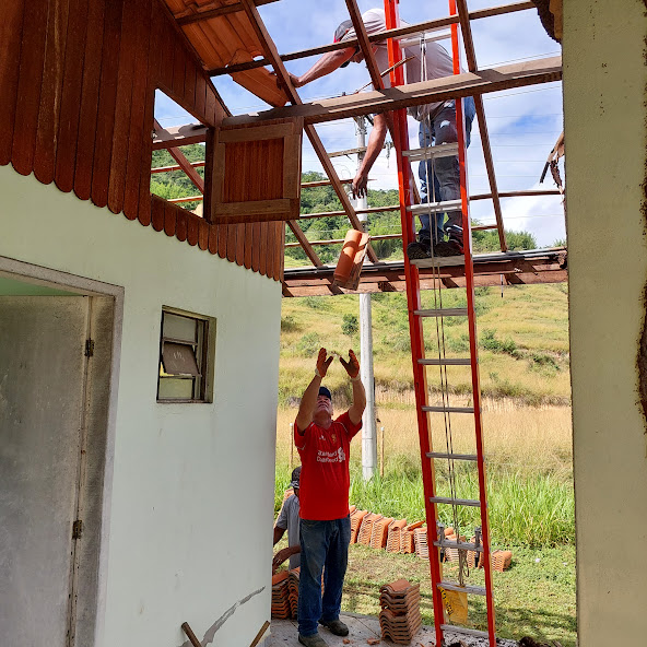 Outra etapa integrando os serviços iniciais foi a retirada das telhas que ficaram intactas após o incidente com o caminhão